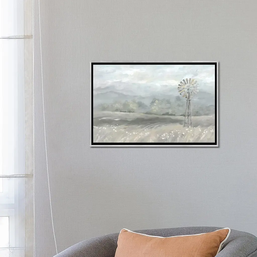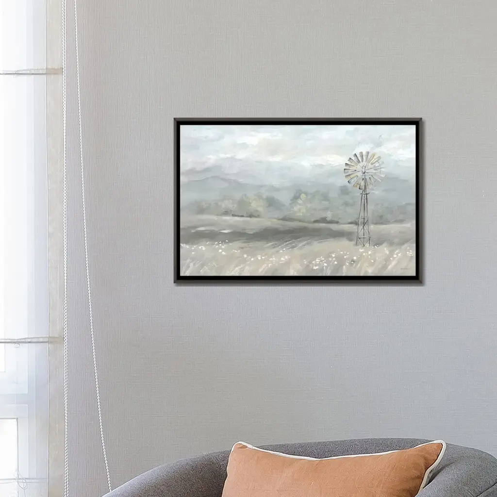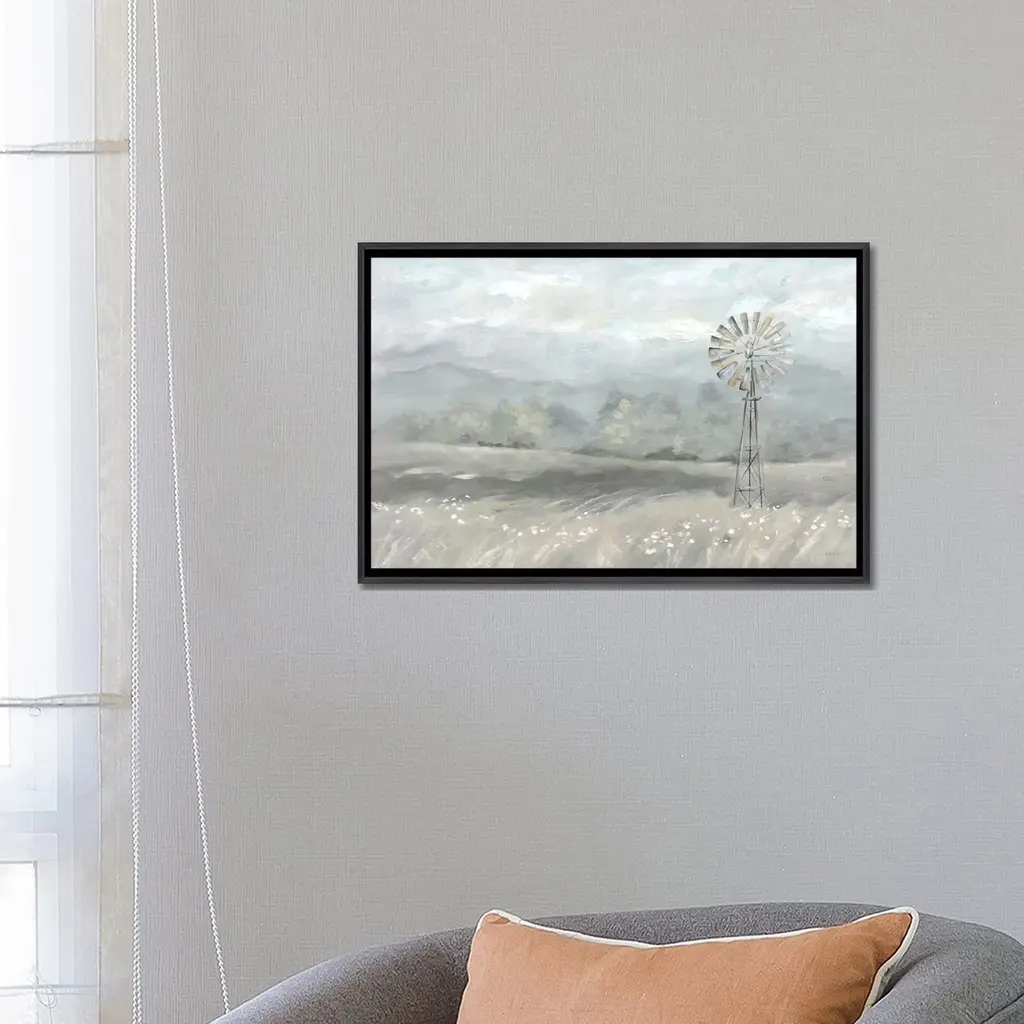 Icanvas "Country Meadow Windmill Landscape Neutral" By Cynthia Coulter Framed - Ebony - 18x26