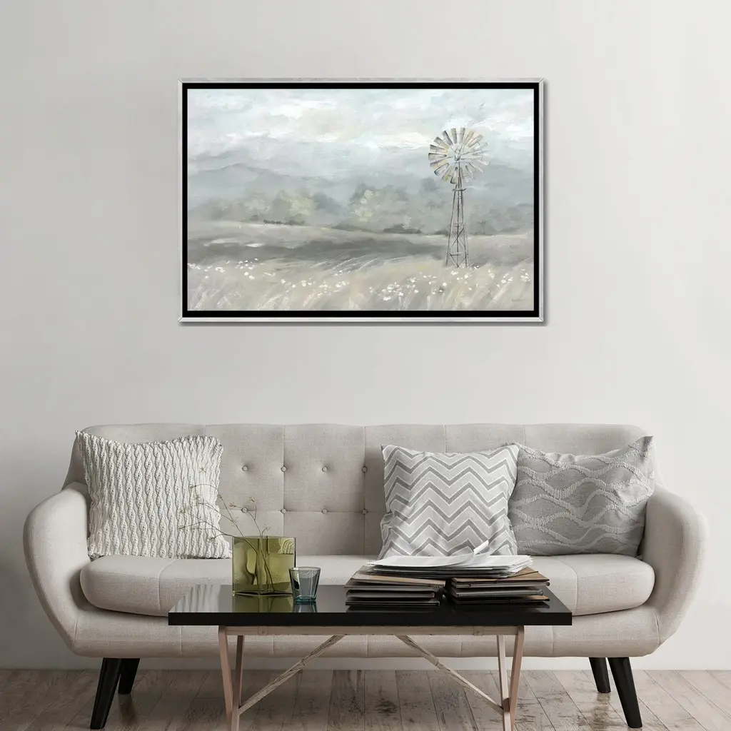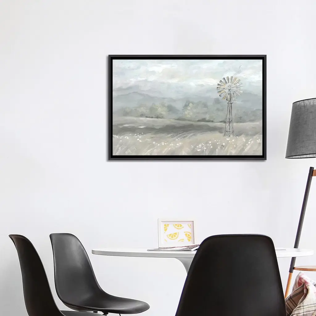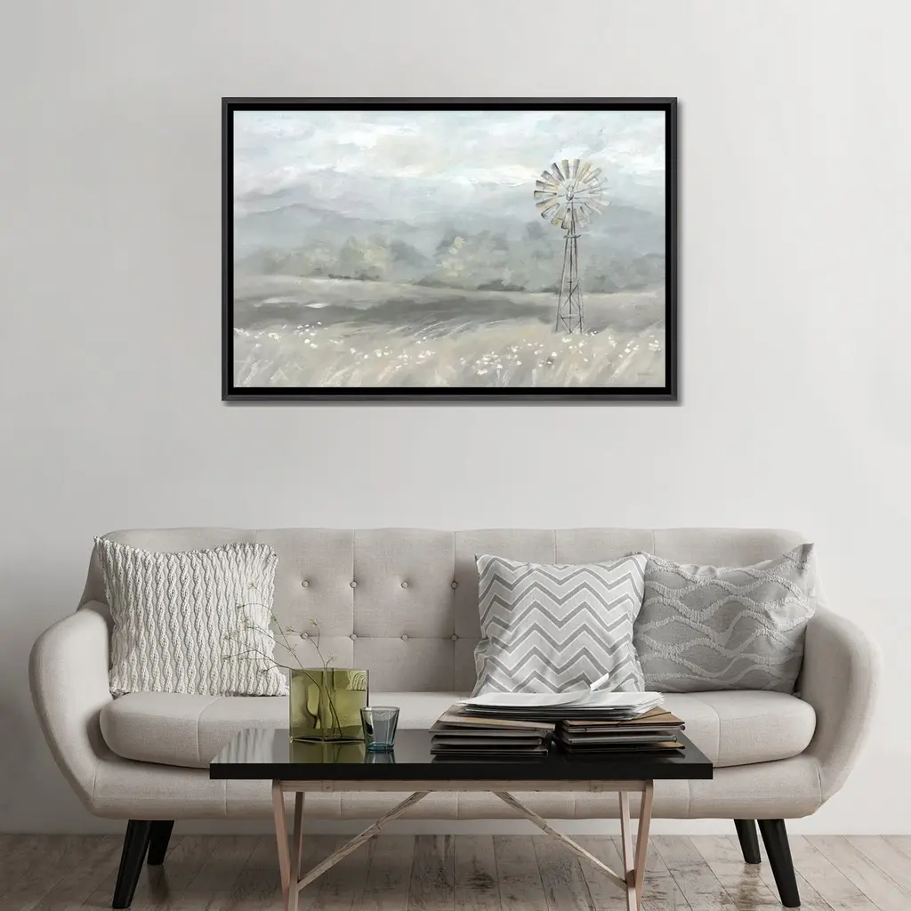 Icanvas "Country Meadow Windmill Landscape Neutral" By Cynthia Coulter Framed - Ebony - 18x26