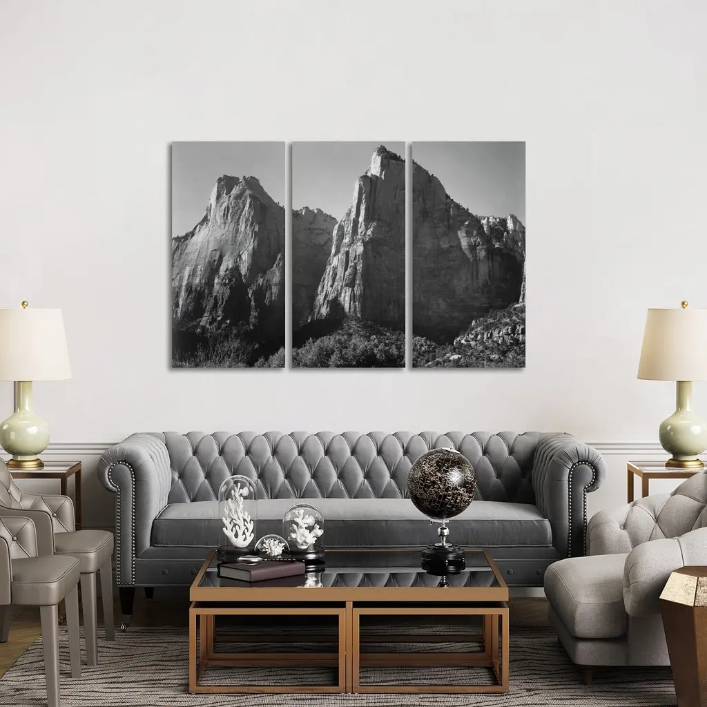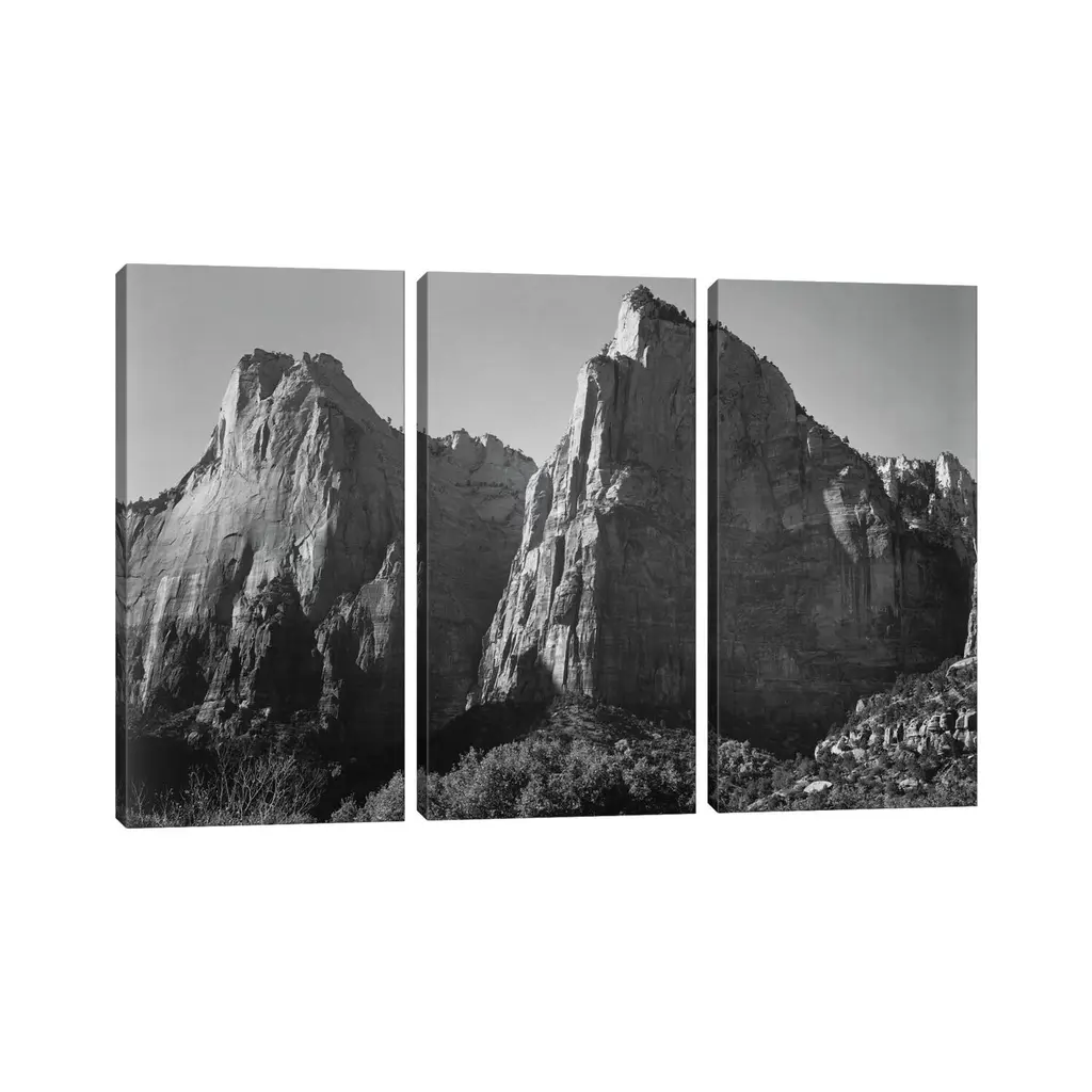 Icanvas "Court Of The Patriarchs, Zion National Park" By Ansel Adams 3-Piece Canvas Wall Art Set - 40x60x1.5