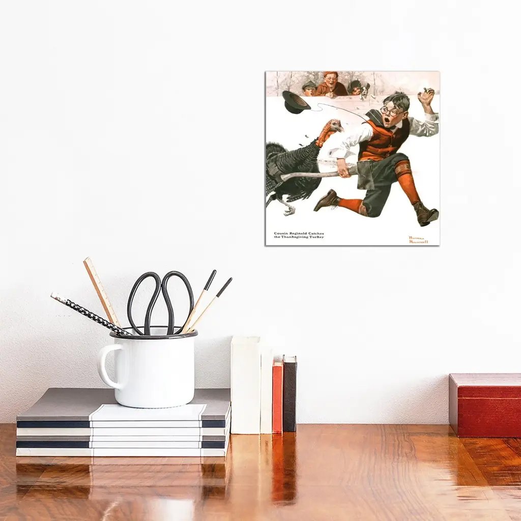 Icanvas "Cousin Reginald Catches The Thanksgiving Turkey" By Norman Rockwell Canvas Print - 12x12x1.5