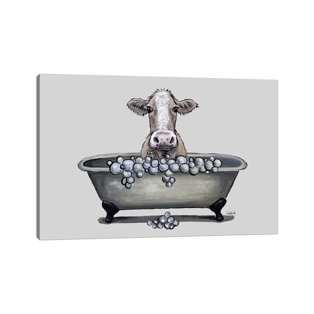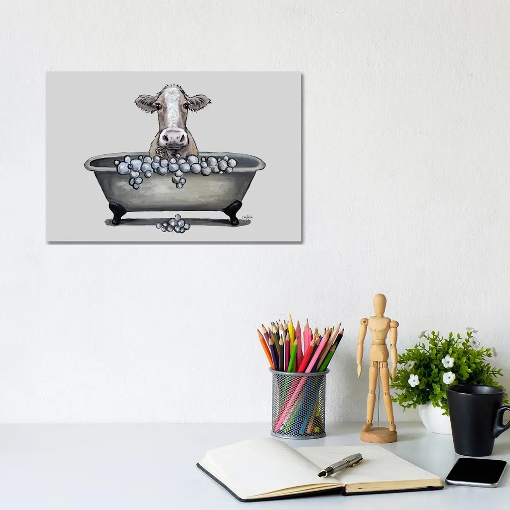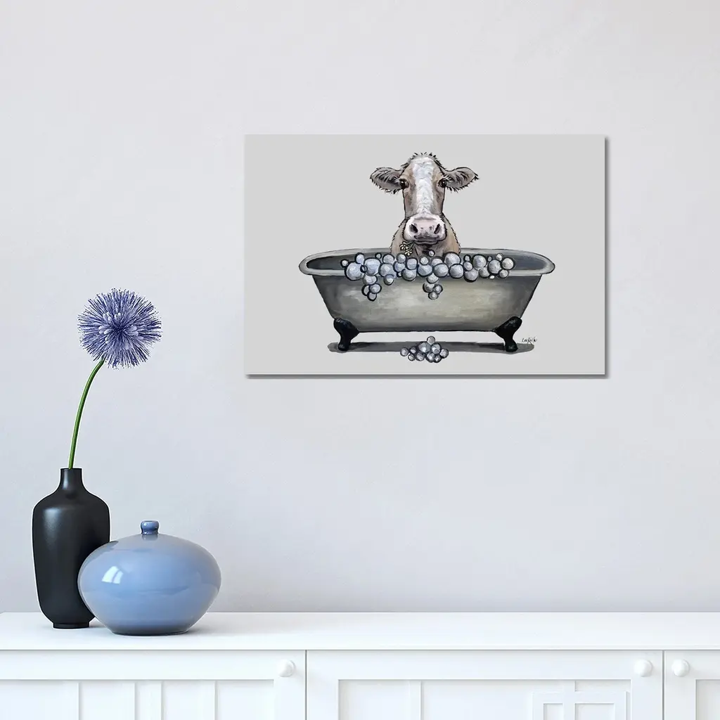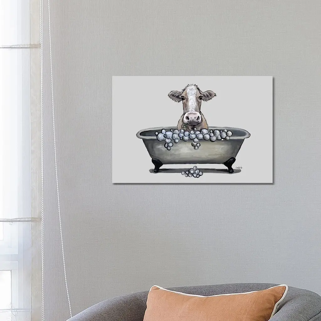 Icanvas "Cow In A Tub, Cow Bathroom Art 'Maizy'" By Hippie Hound Studios Canvas Print - 12x18x1.5