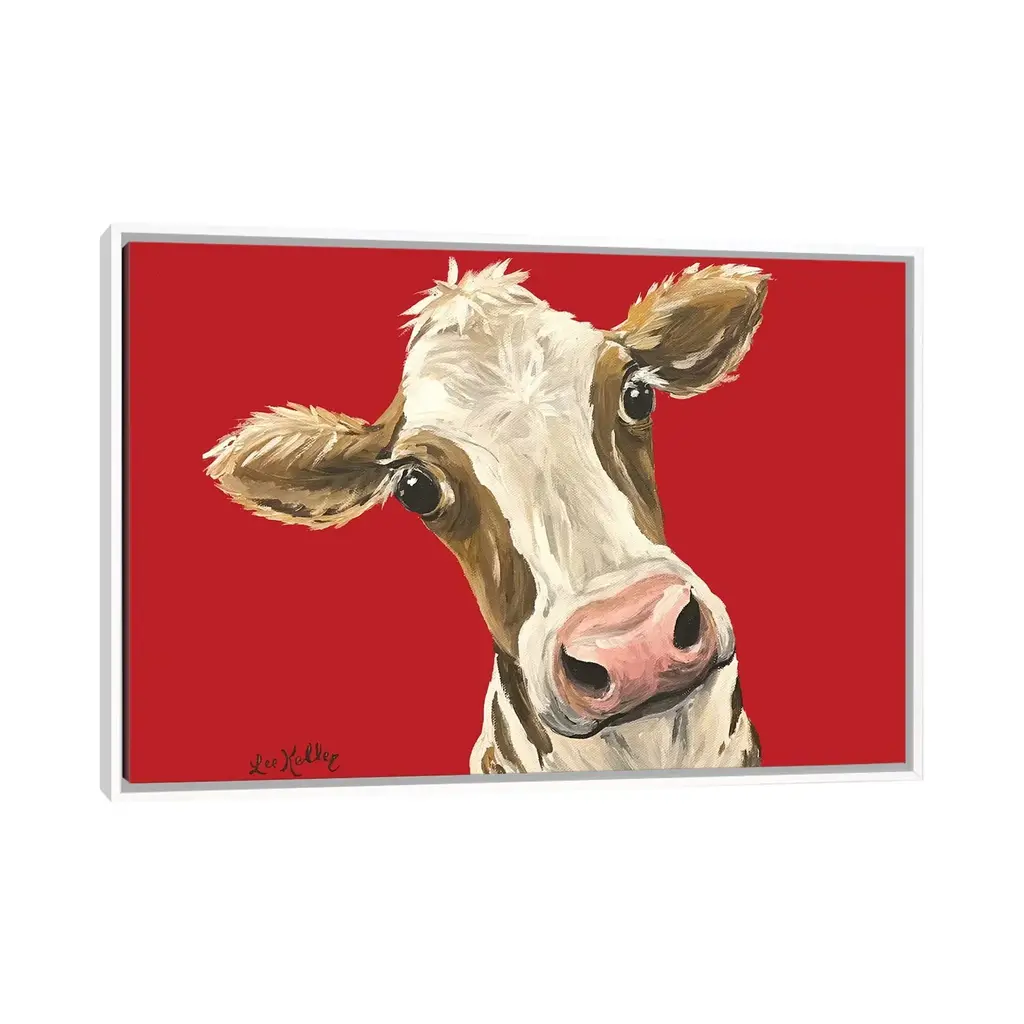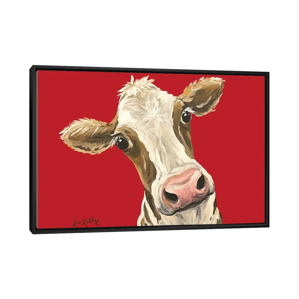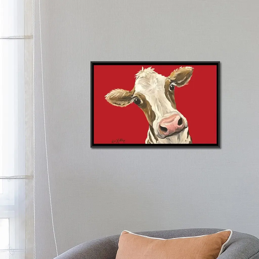 Add a touch of contemporary style to your space with the iCanvas "Cow Red New Background" by Hippie Hound Studios Framed Canvas Art. Crafted in the USA with artist-grade canvas and professionally hand-stretched over North American pine-wood bars, this artwork offers the texture, look, and feel of a fine-art painting. The fade-resistant archival inks ensure vibrant color reproduction that will remain beautiful for decades. With its elegant hard wood frame and "floating" illusion, this gallery-wrapped canvas is the perfect addition to any room. Elevate your decor with this exceptional piece of art.Features: