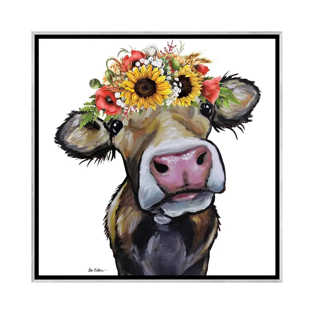 Icanvas "Cow Sunflower Art, Hazel" By Hippie Hound Studios Framed - 37x37 - Charcoal