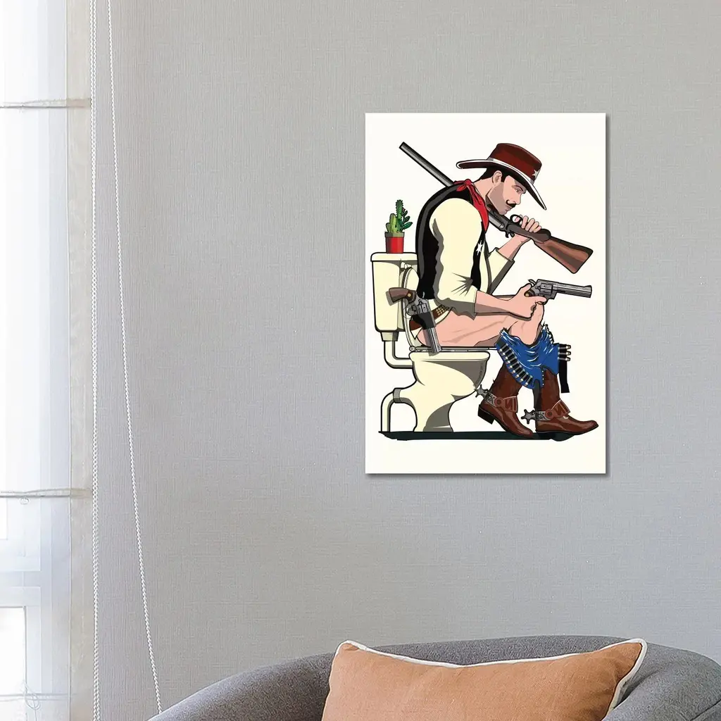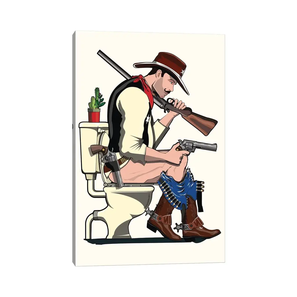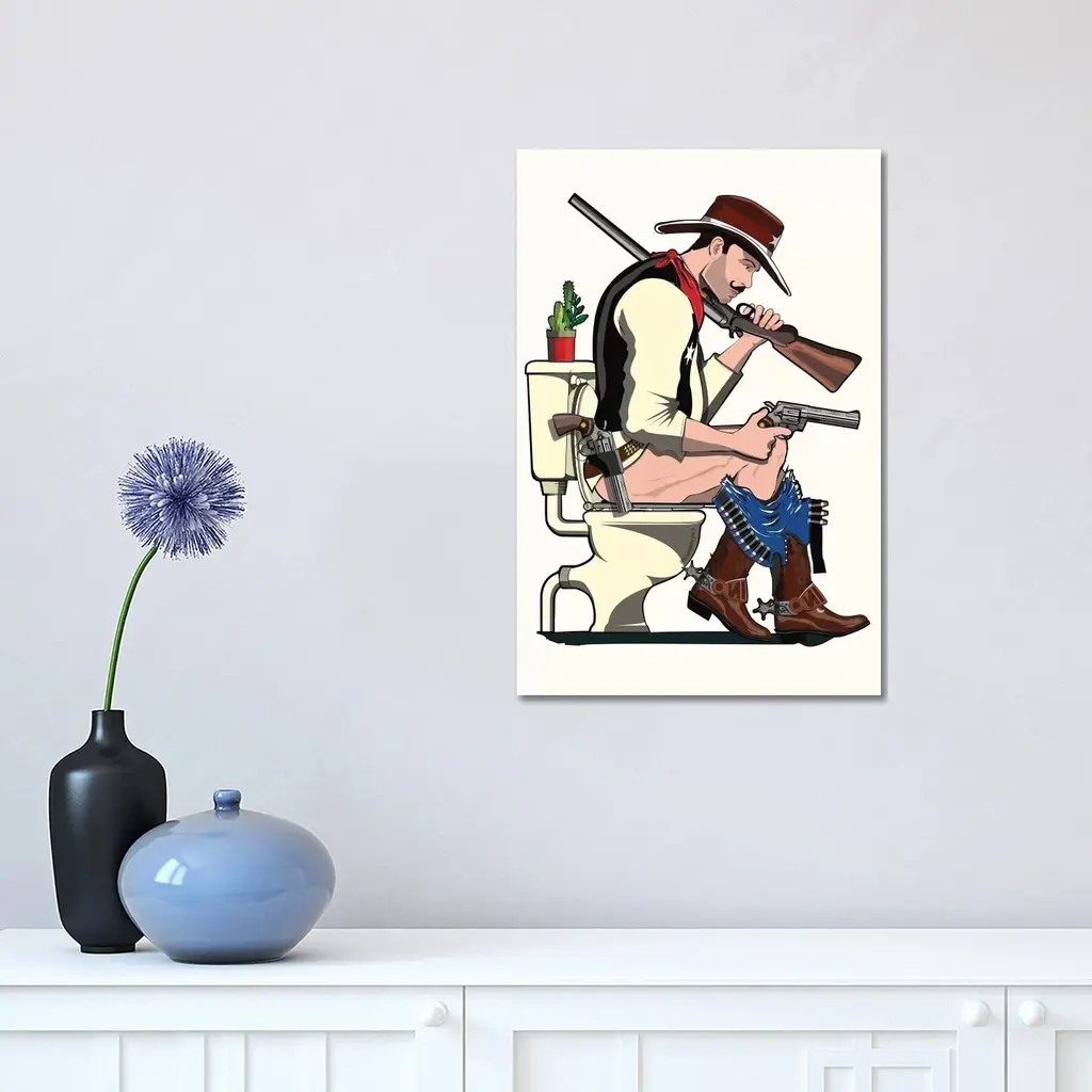 Icanvas "Cowboy On The Toilet" By Wyattdesign Canvas Print - 18x12x1.5