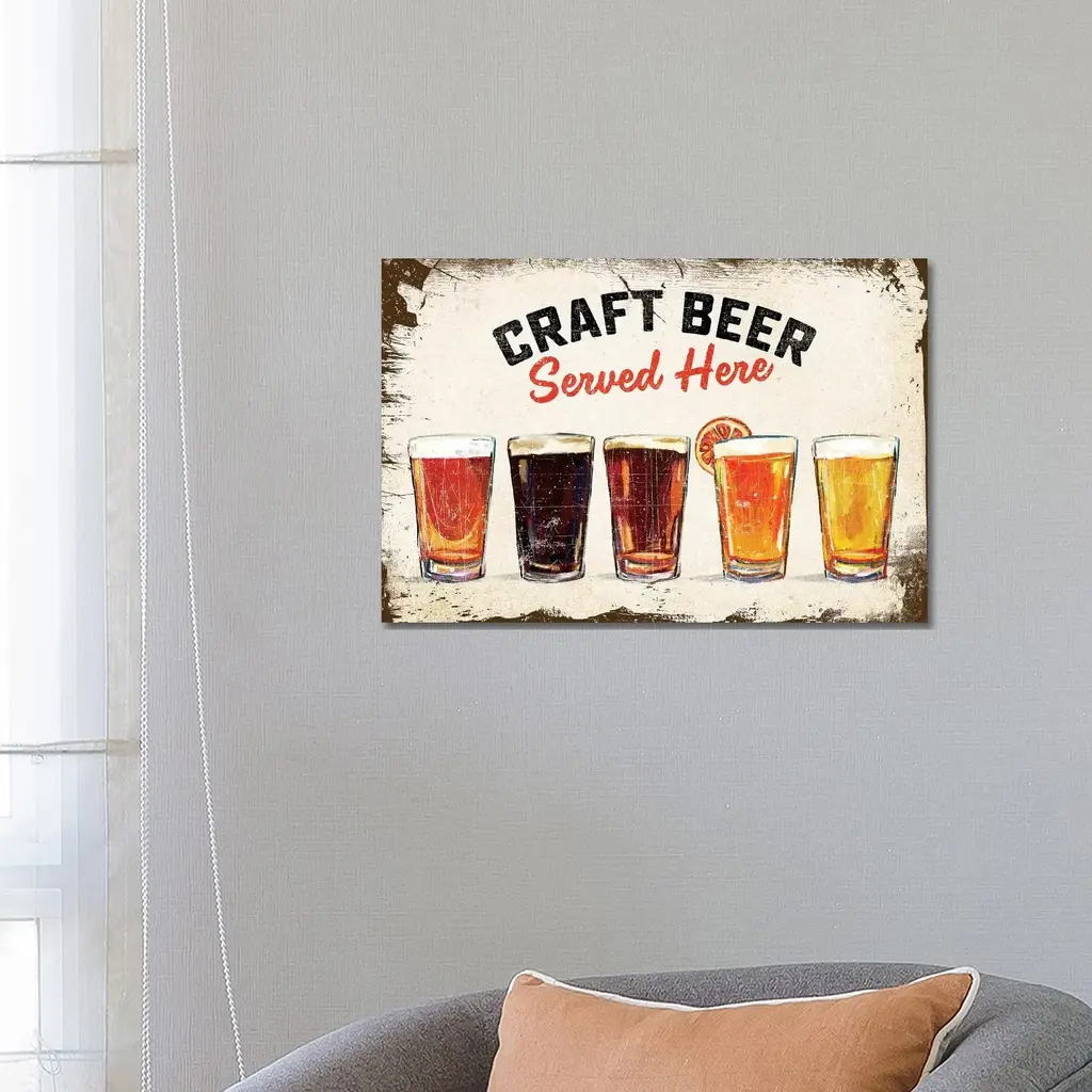 Icanvas "Craft Beer Lineup Vintage Sign" By The Whiskey Ginger Canvas Print - 12x18x1.5