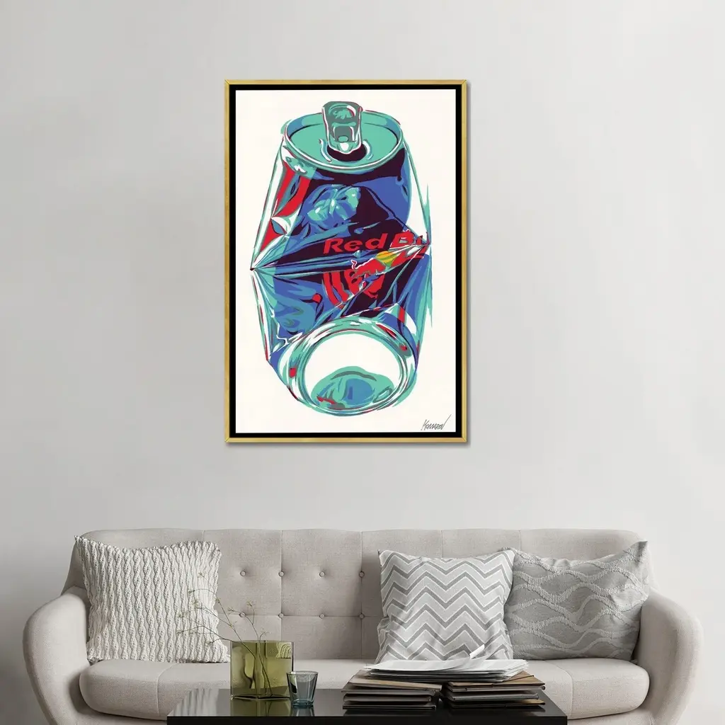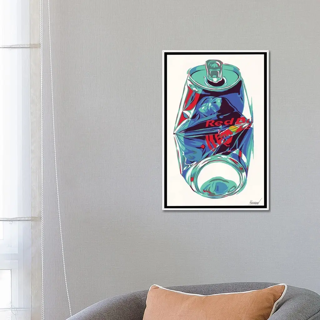 Icanvas "Crashed Red Bull Can" By Vitali Komarov Framed Canvas Print - White - 26x18