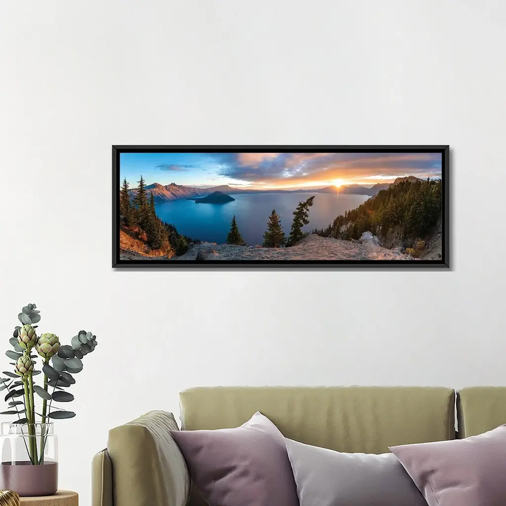 Icanvas "Crater Lake Panorama" By Lucas Moore Framed Canvas Print - 16x48 - Black