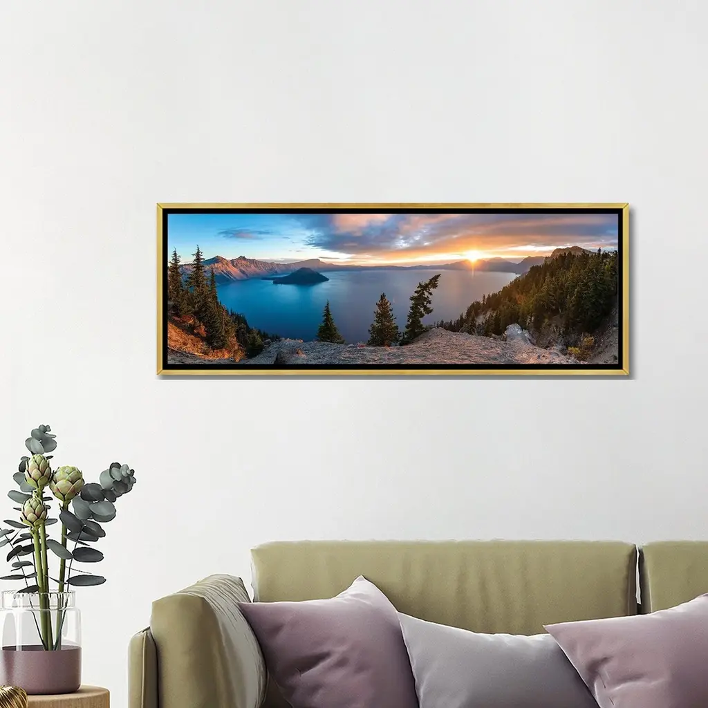 Icanvas "Crater Lake Panorama" By Lucas Moore Framed Canvas Print - 16x48 - Gold