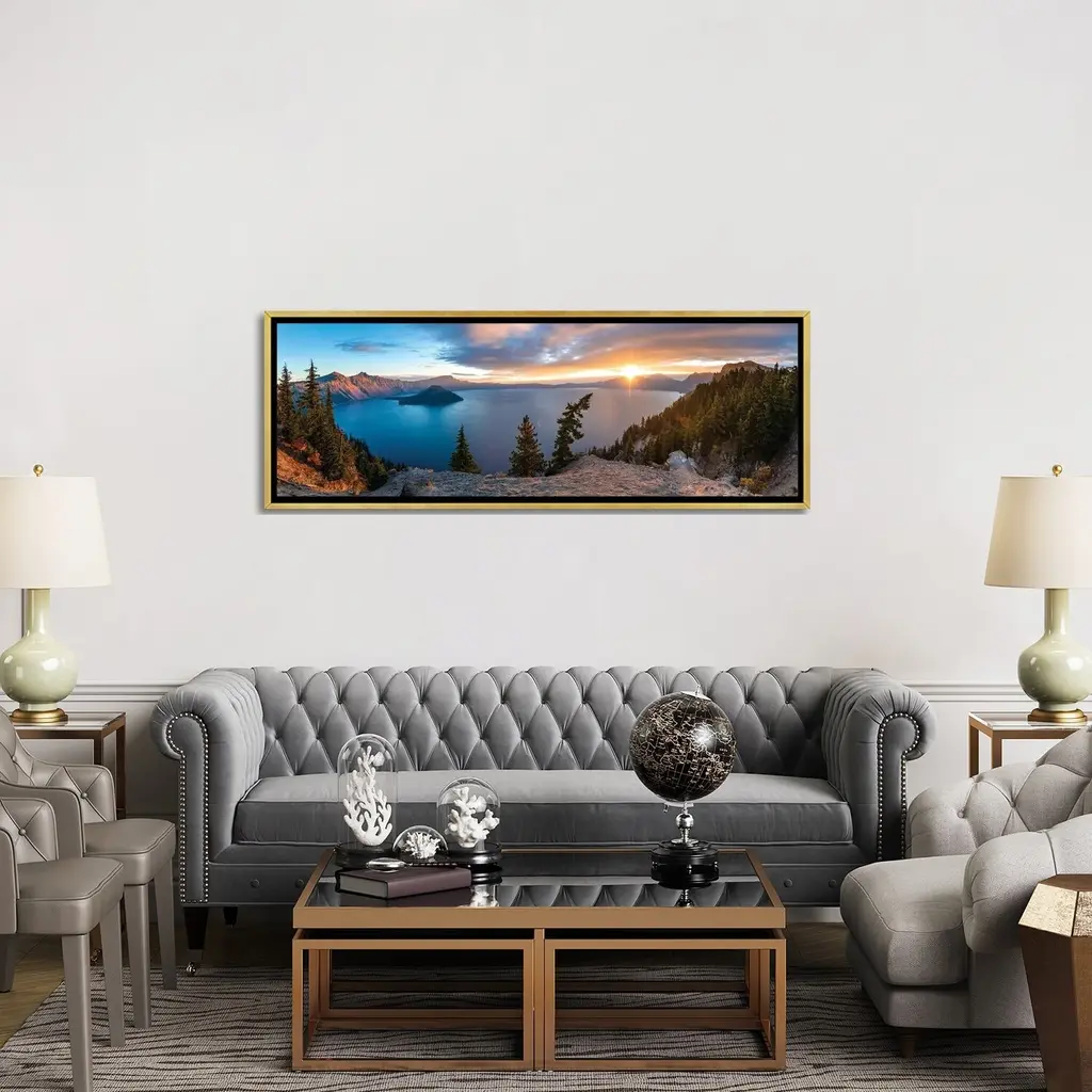 Icanvas "Crater Lake Panorama" By Lucas Moore Framed Canvas Print - 20x60 - Gold