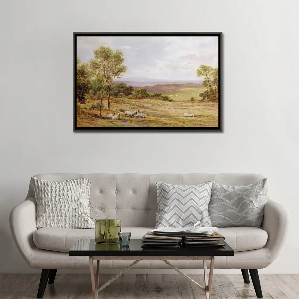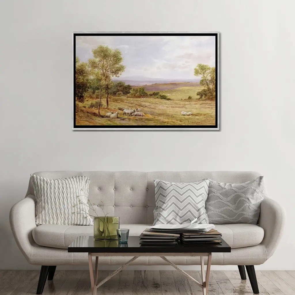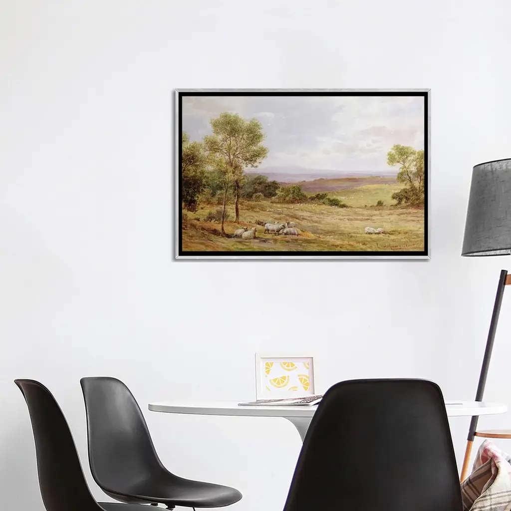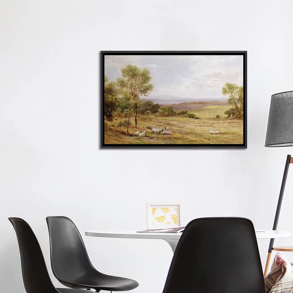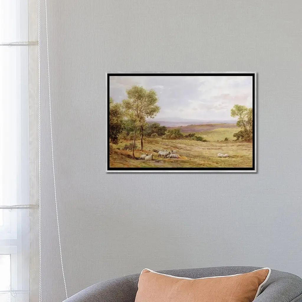Elevate your space with the iCanvas "Cumberland hills from Wardrew House, Gilston" by James Aumonier Framed artwork. This stunning piece is printed on high-quality artist-grade canvas, giving it the texture and appearance of a fine-art painting. Crafted in the USA, the canvas is professionally hand-stretched and stapled over durable North American pine-wood bars in a Gallery Wrap style. The artwork is beautifully presented on a 2-inch thick, elegant hardwood frame, creating a "floating" illusion with a 3/8" space between the art and frame. With fade-resistant archival inks, the colors remain vibrant for decades, even when exposed to strong light. Enhance your space with this contemporary and detailed artwork that exudes style and sophistication.Features:
