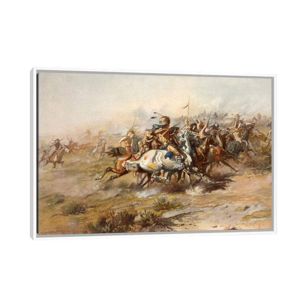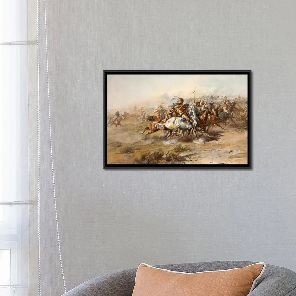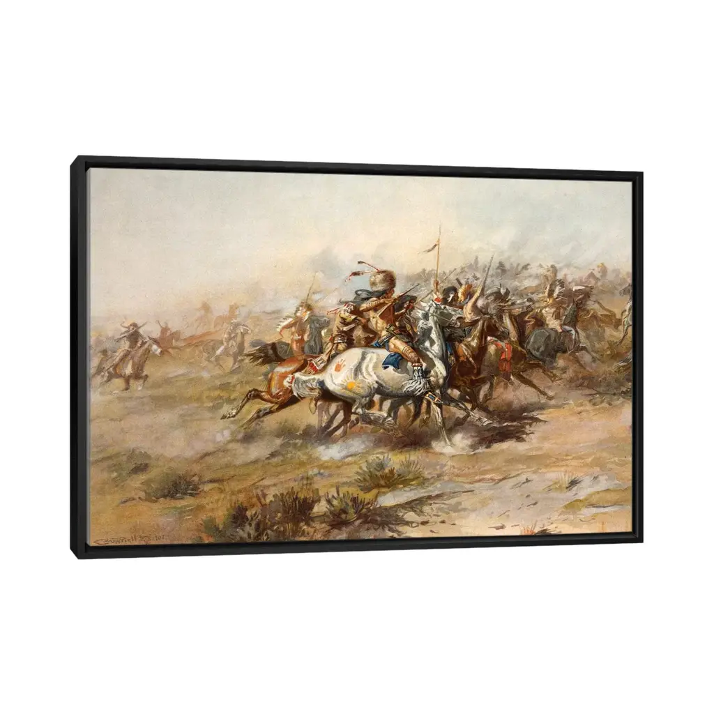 Icanvas "Custer Fight" By Charles Marion Russell Framed Canvas Print - Black - 18x26
