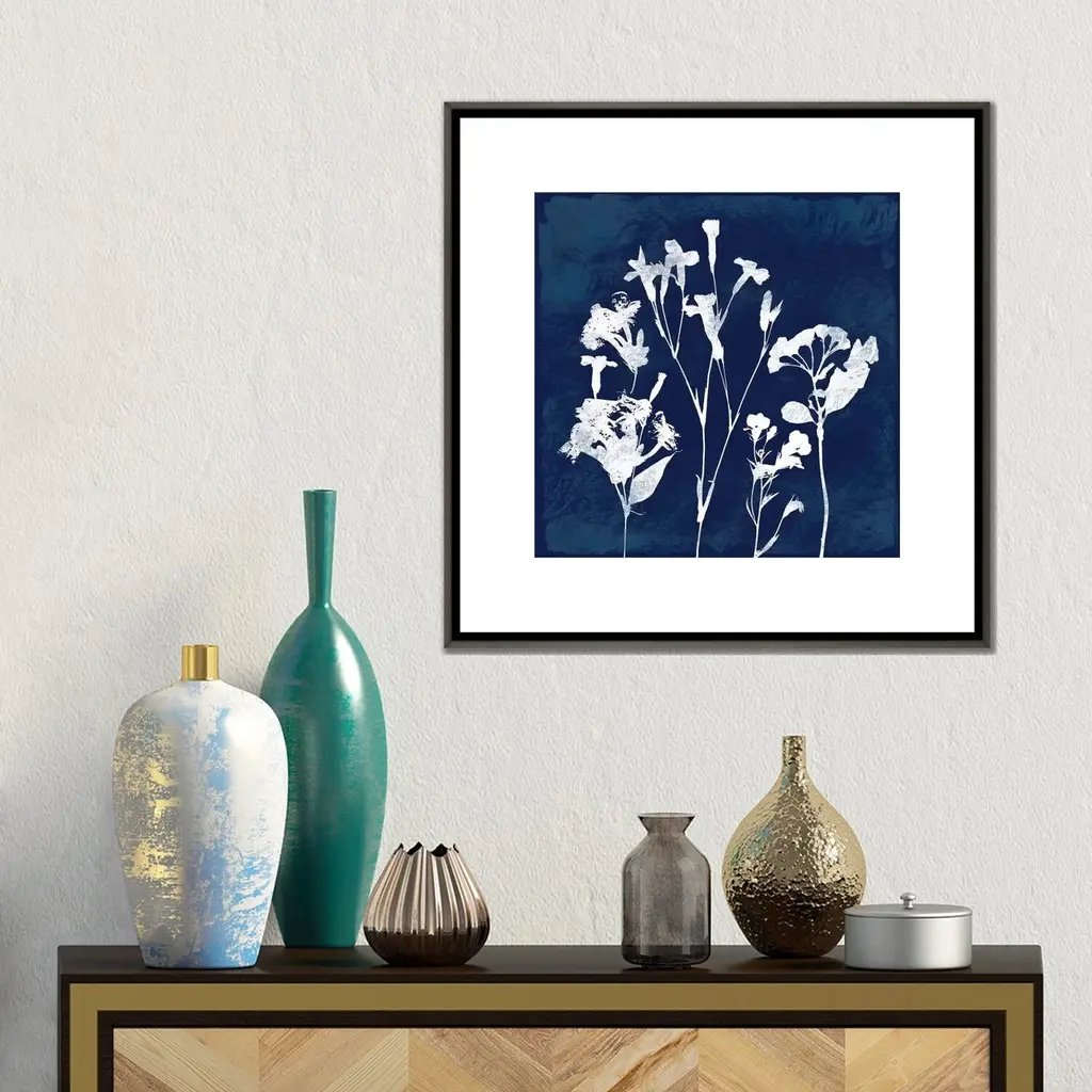 Icanvas "Cyanotype Botanical Ii" By Carol Robinson Framed - Charcoal - 37x37