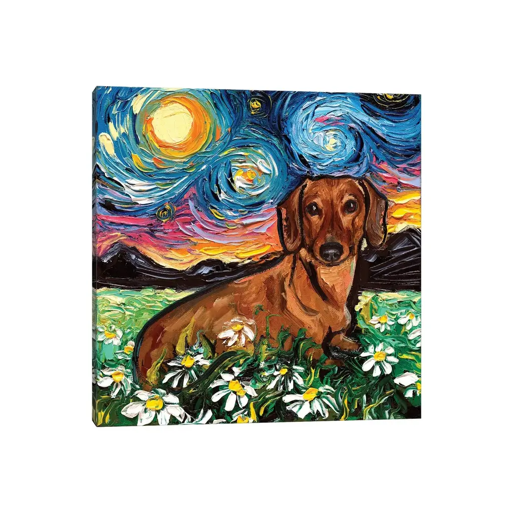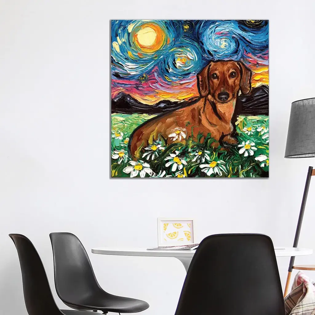 Icanvas "Daisy Dachshund Night" By Aja Trier Canvas Print - 26x26x1.5
