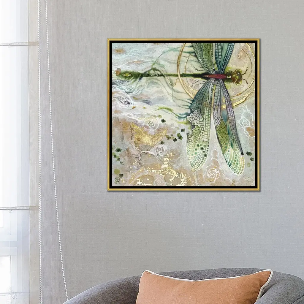 Icanvas "Damsel Fly Ii" By Stephanie Law Framed Canvas Print - 26x26 - Gold