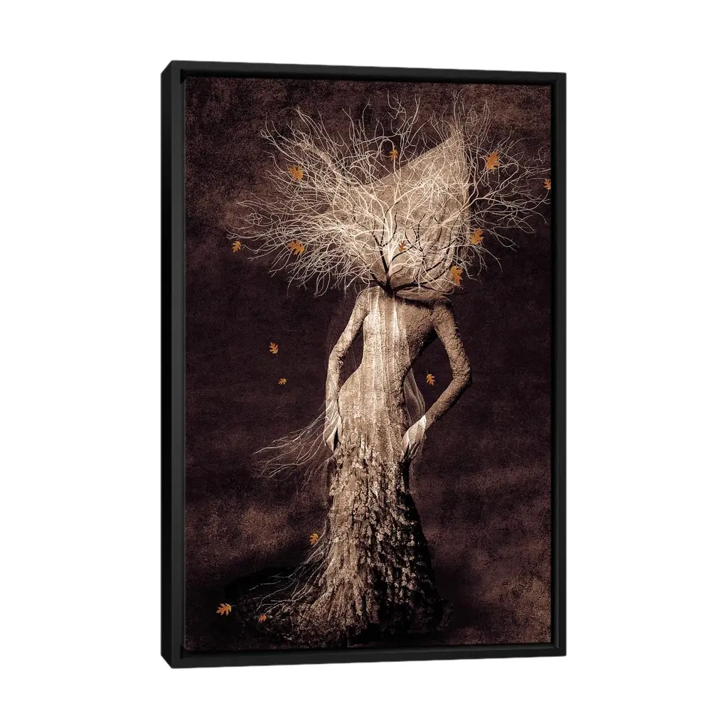 Icanvas "Dark Portrait In Autumn" By Viviana Gonzalez Framed Canvas Print - Gold - 26x18