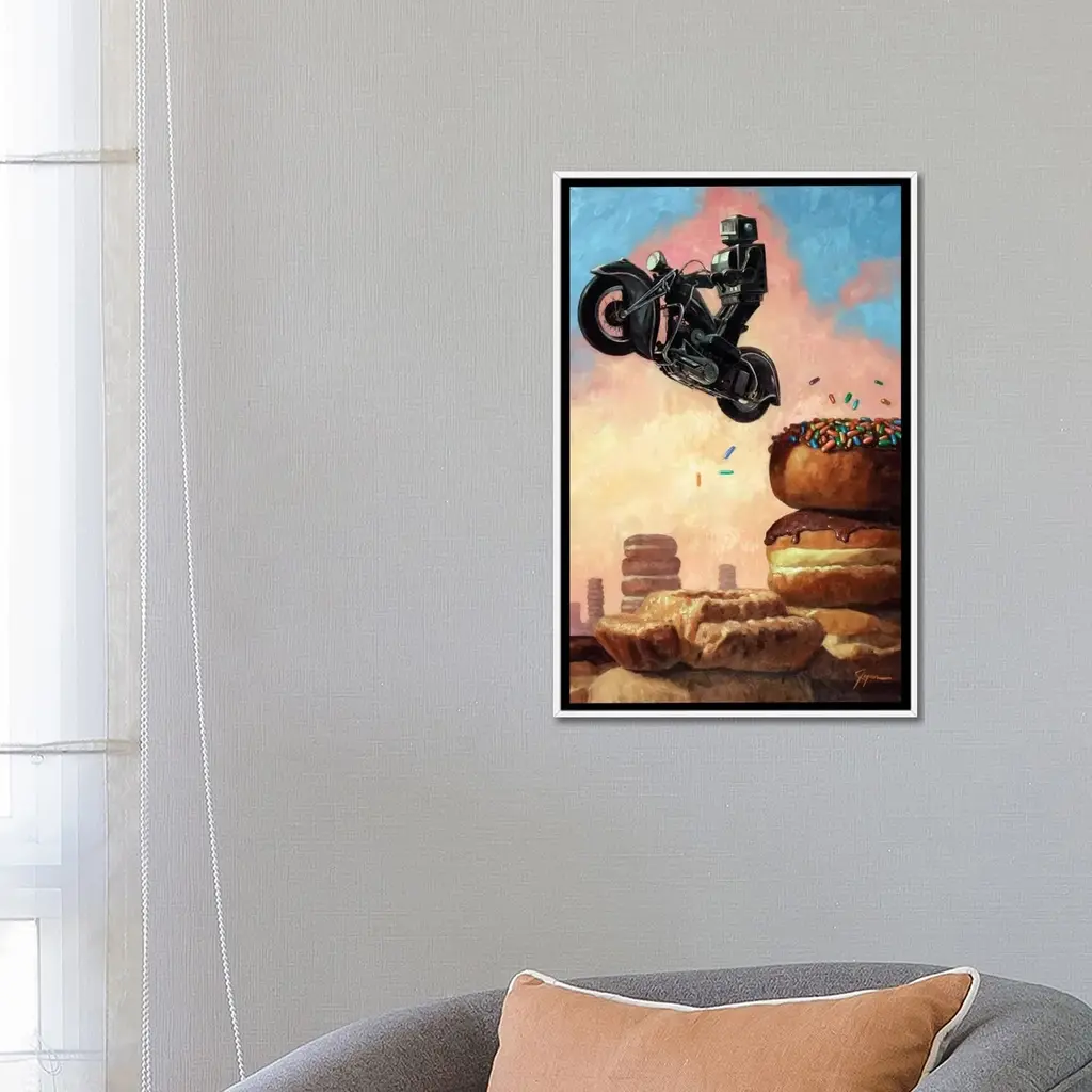 Great Art Deserves to be on Canvas! Unlike thin posters and paper prints, Giclee canvas artwork offers the texture, look and feel of fine-art paintings. This artwork is crafted in the USA with artist-grade canvas, professionally hand-stretched and stapled over North American pine-wood bars in Gallery Wrap style; a method utilized by artists to present artwork in galleries. Your Gallery-Wrapped Canvas comes mounted to a 2 inch thick, elegant hard wood frame. The art is inset, leaving a 3/8" space between the art and frame; creating a "floating" illusion. Fade-resistant archival inks guarantee perfect color reproduction that remains vibrant for decades even when exposed to strong light. Add brilliance in color and exceptional detail to your space with this contemporary and uncompromising style!