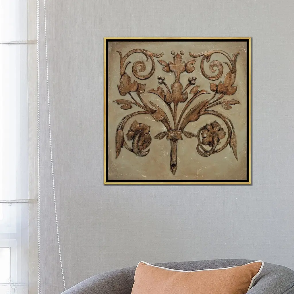 Icanvas "Decorative Scroll Ii" By Pablo Segovia Framed Canvas Print - Black - 12x12