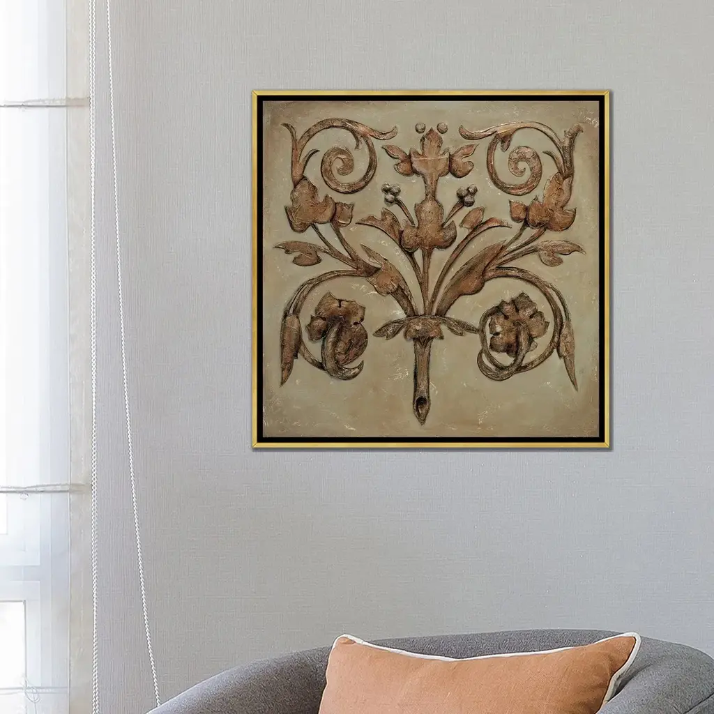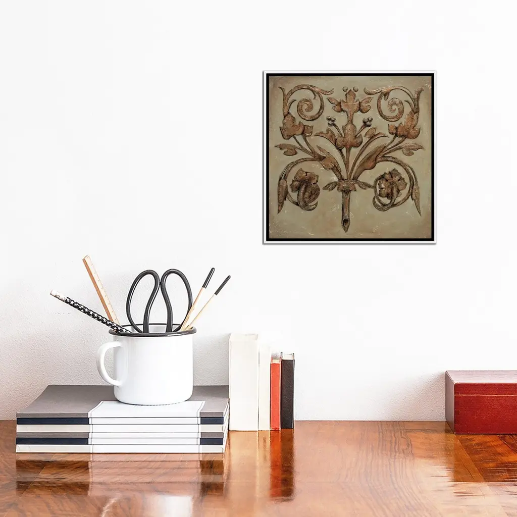 Icanvas "Decorative Scroll Ii" By Pablo Segovia Framed Canvas Print - White - 12x12
