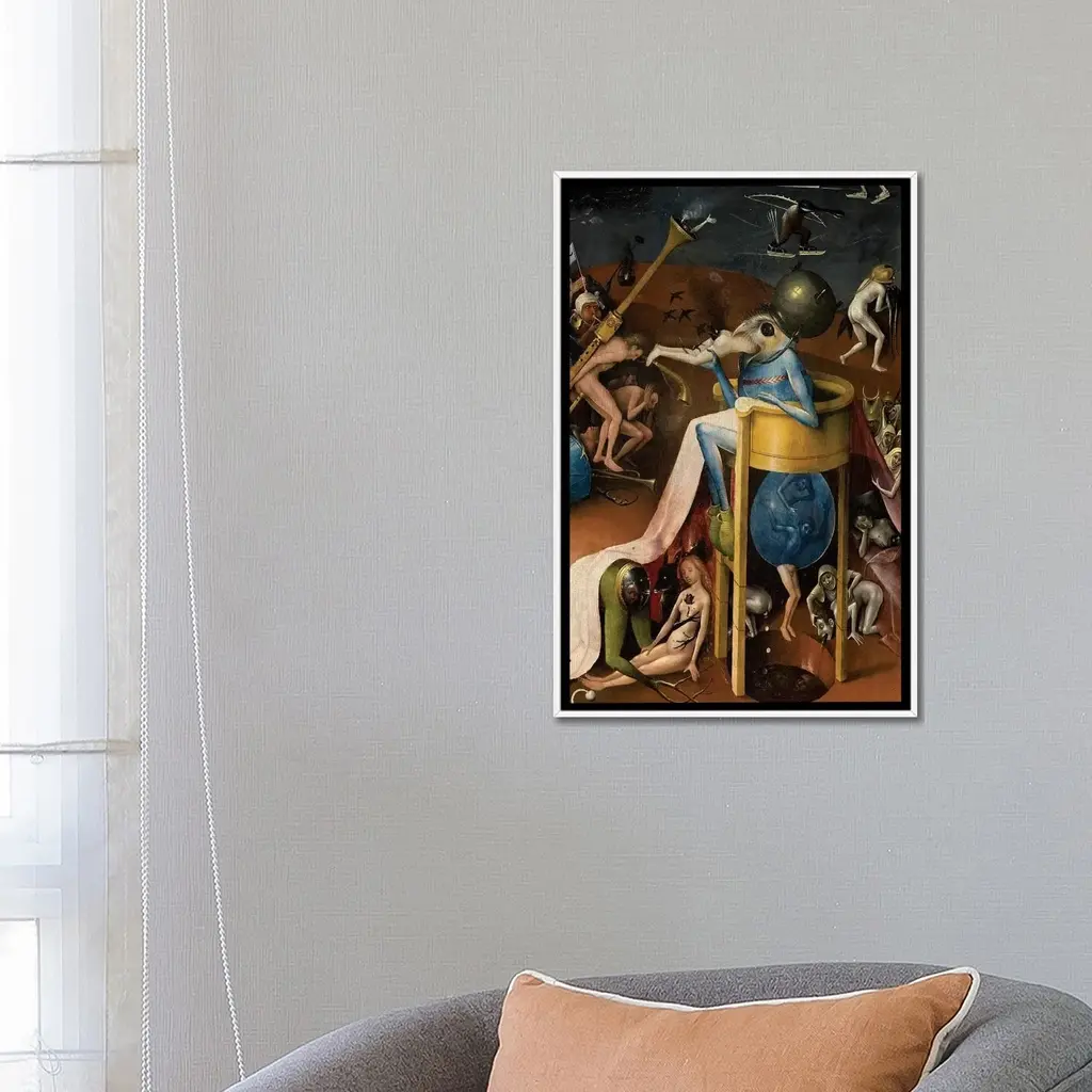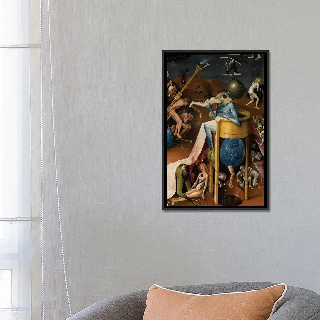 Icanvas "Detail Of The Prince Of Hell, The Garden Of Earthly Delights, 1490-1500" By Hieronymus Bosch Framed Canvas Print - Black - 48x32