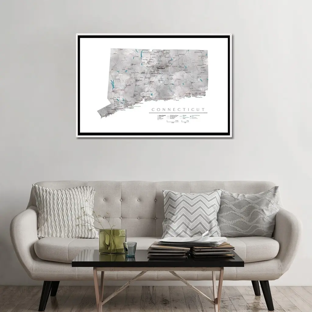 Icanvas "Detailed Map Of Connecticut" By Blursbyai Framed Canvas Print - Gold - 26x40