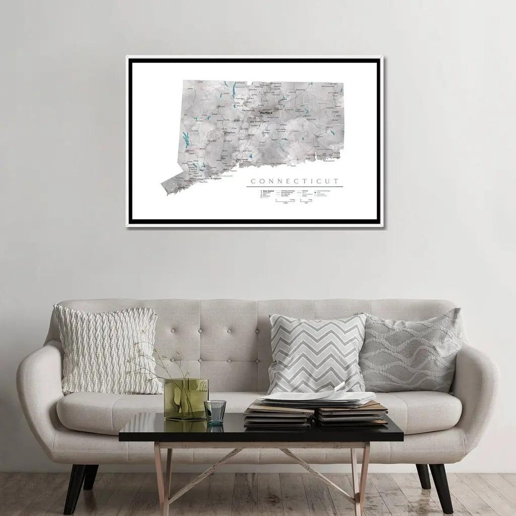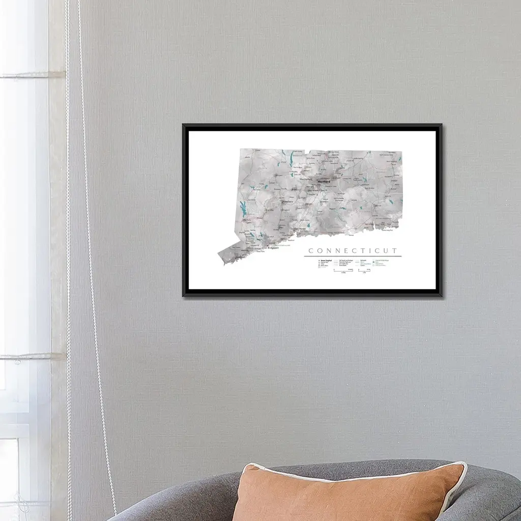 Icanvas "Detailed Map Of Connecticut" By Blursbyai Framed Canvas Print - White - 18x26