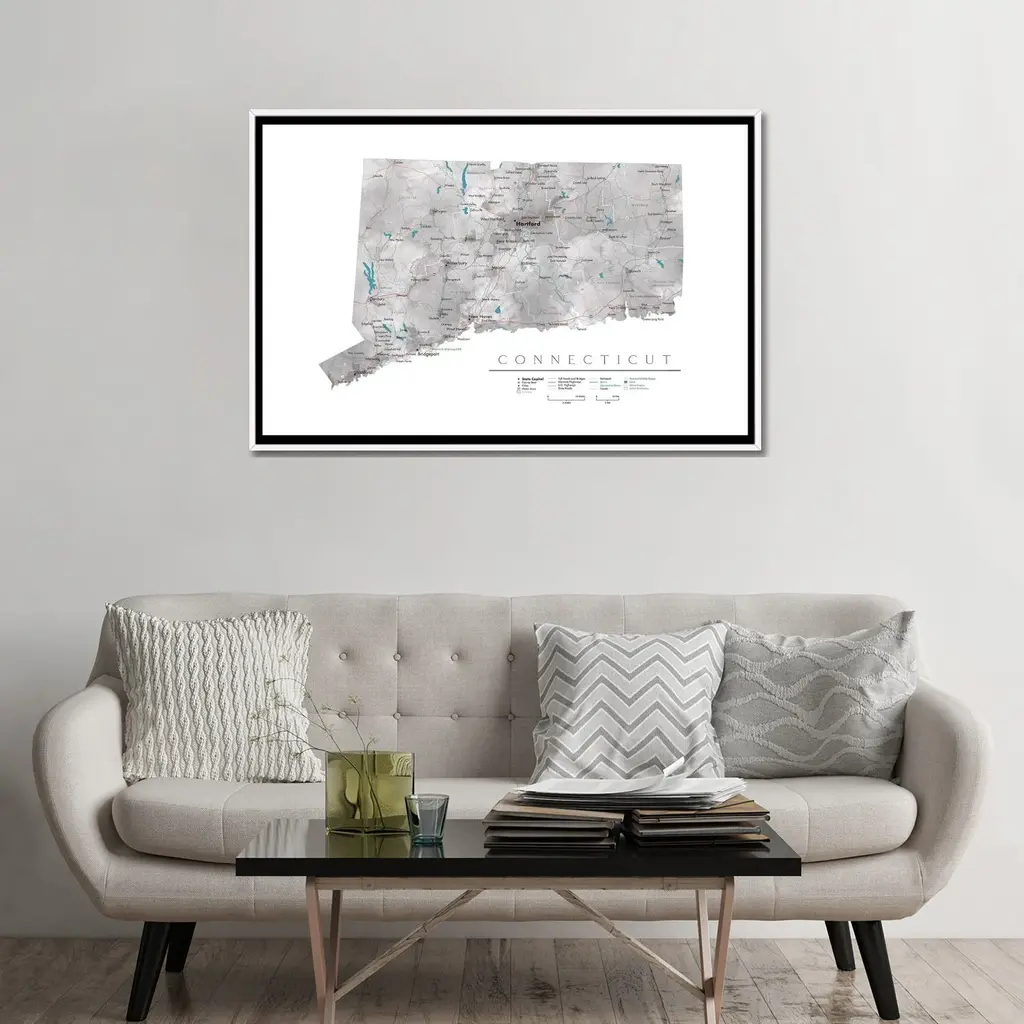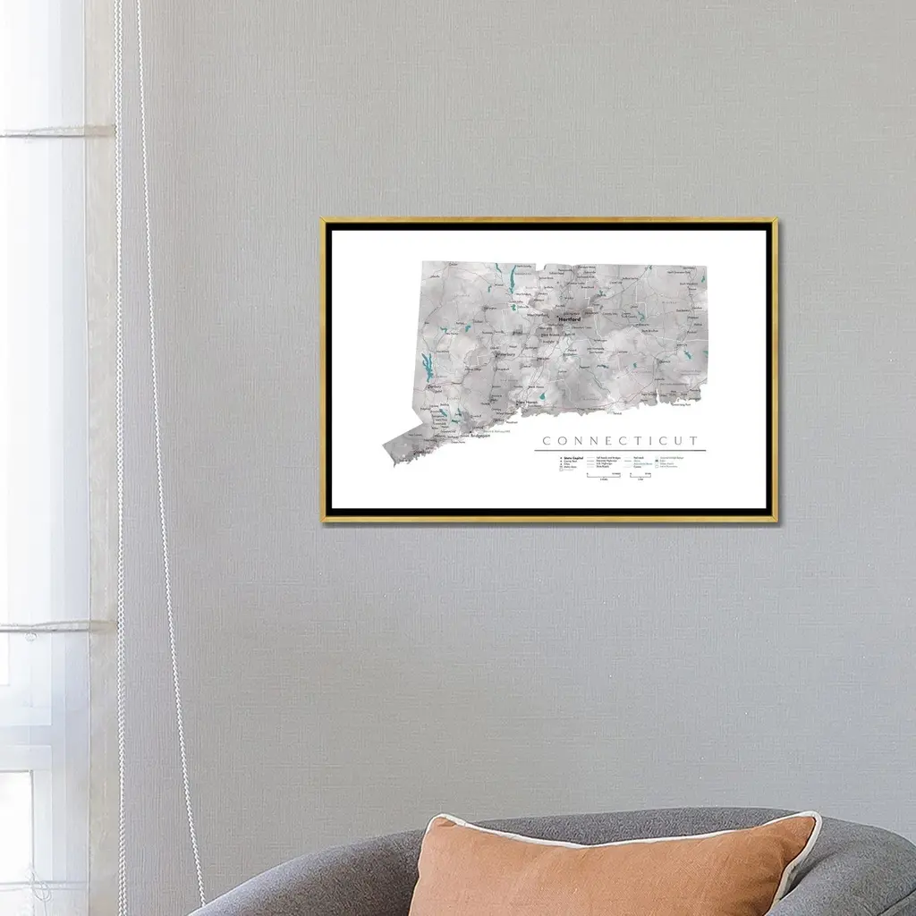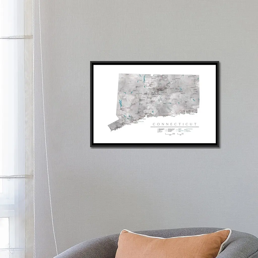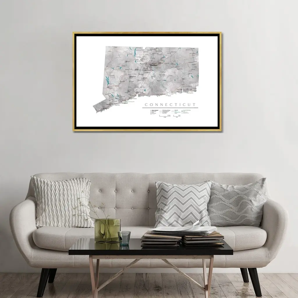 Icanvas "Detailed Map Of Connecticut" By Blursbyai Framed Canvas Print - White - 32x48