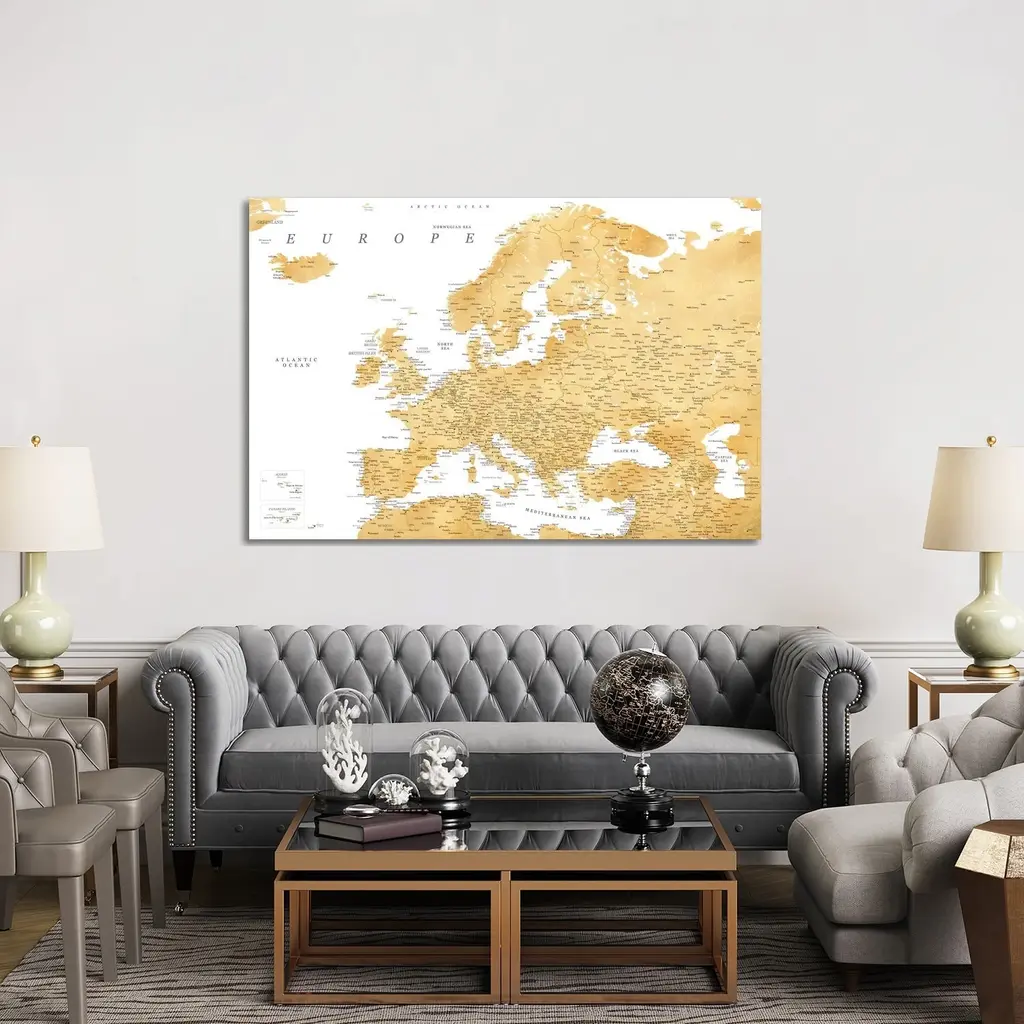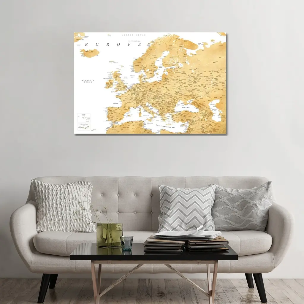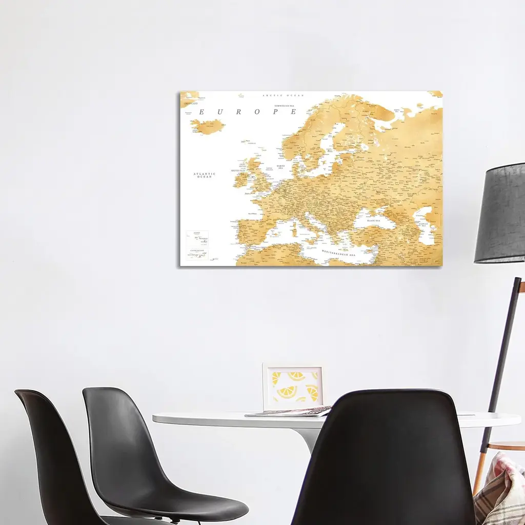 Icanvas "Detailed Map Of Europe In Gold Ochre" By Blursbyai Canvas Print - 8X12x0.75