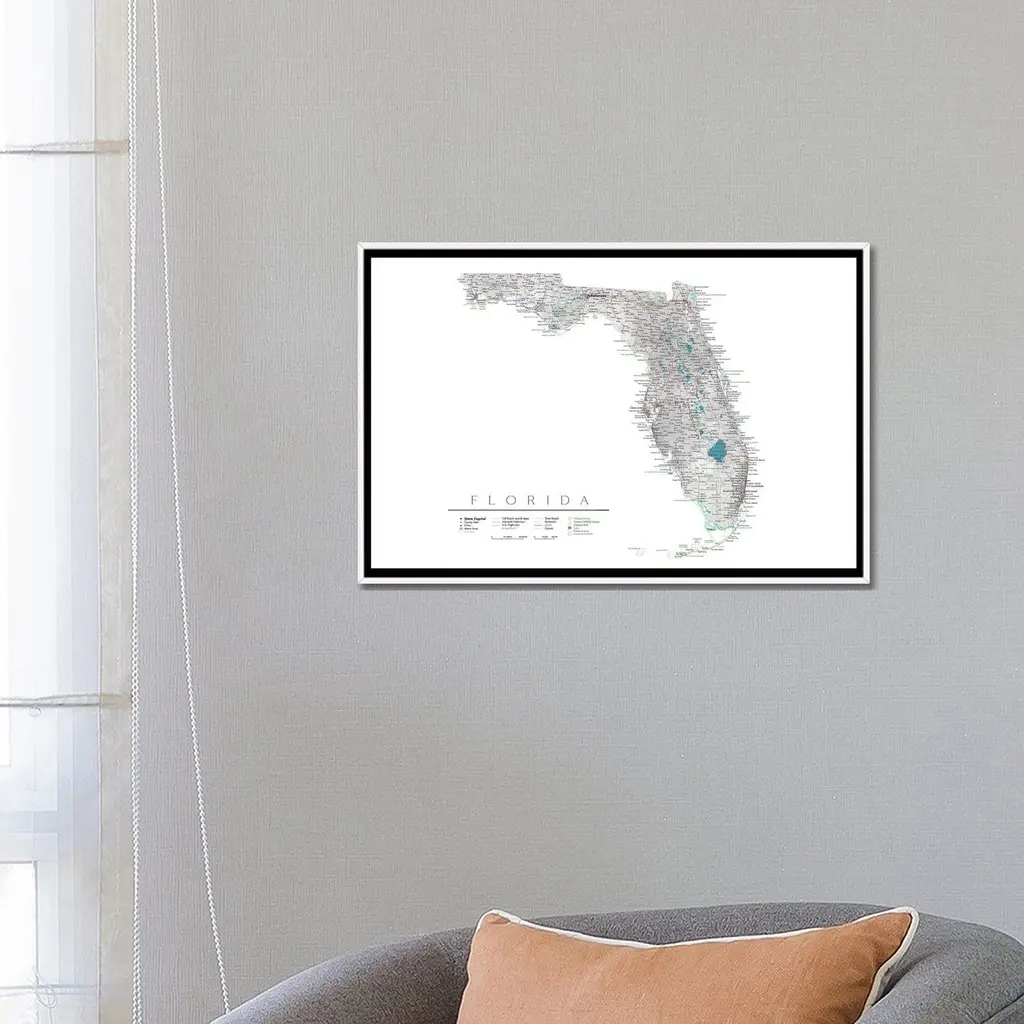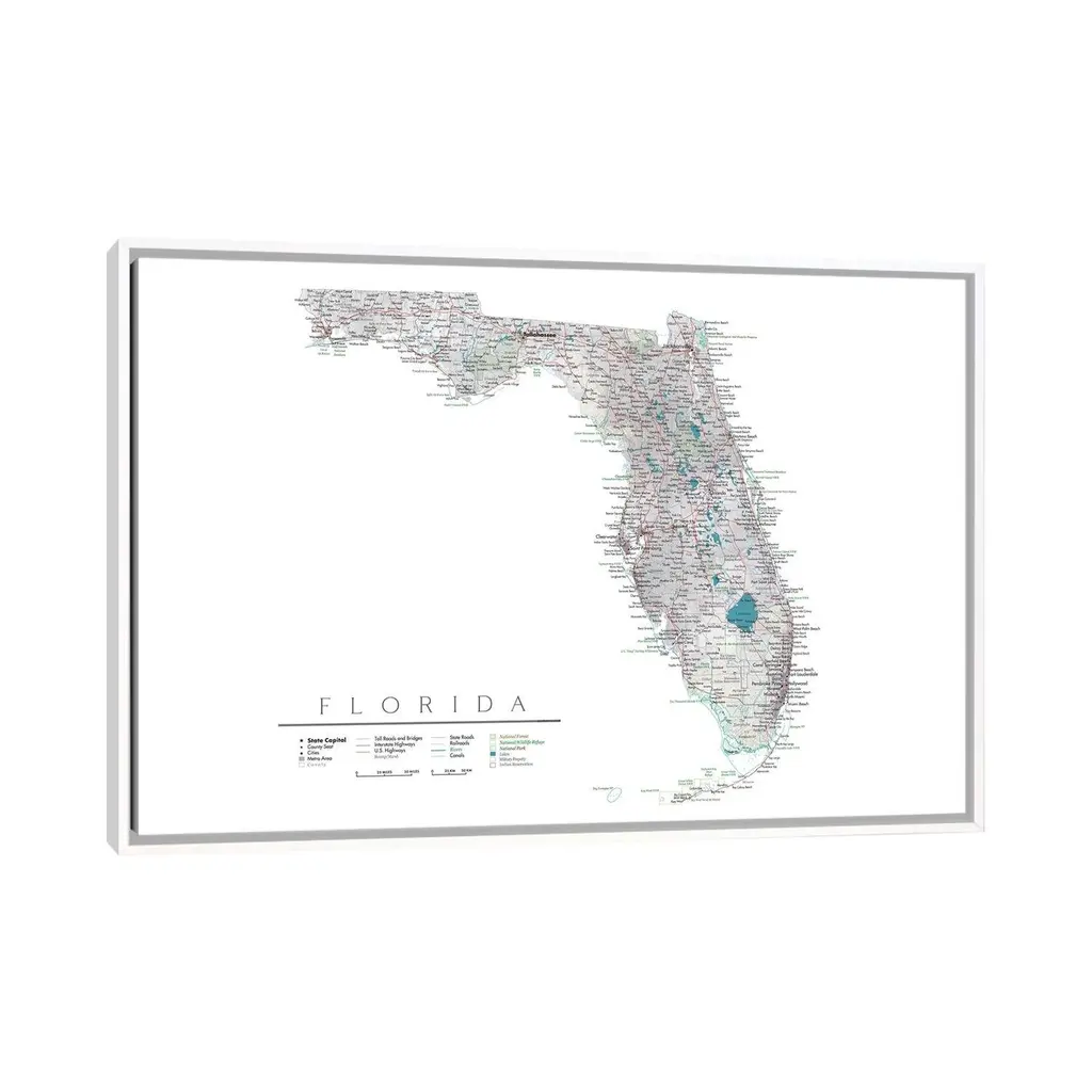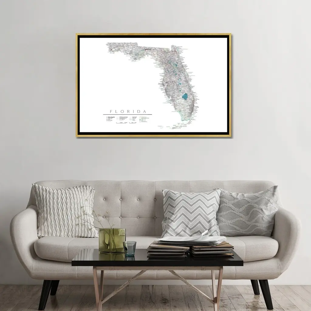 Icanvas "Detailed Map Of Florida, Usa" By Blursbyai Framed Canvas Print - Black - 26x40