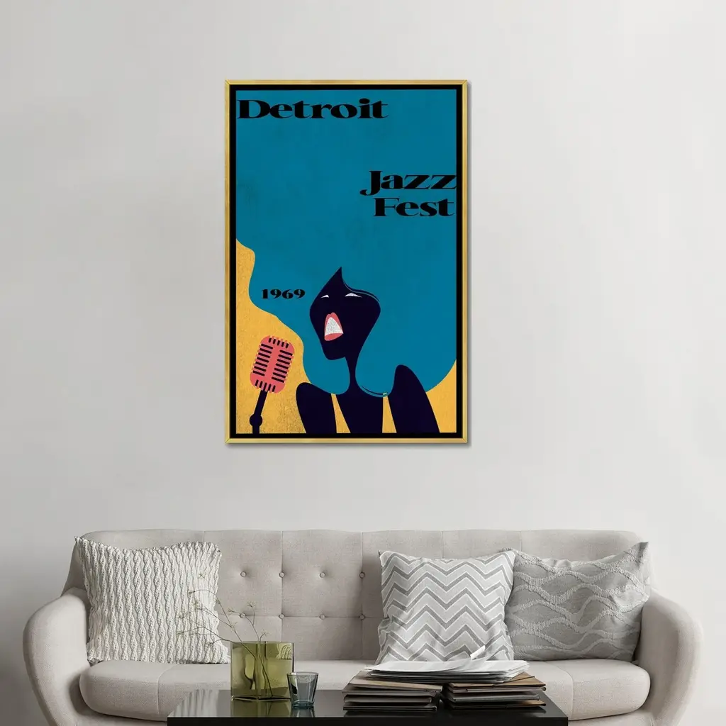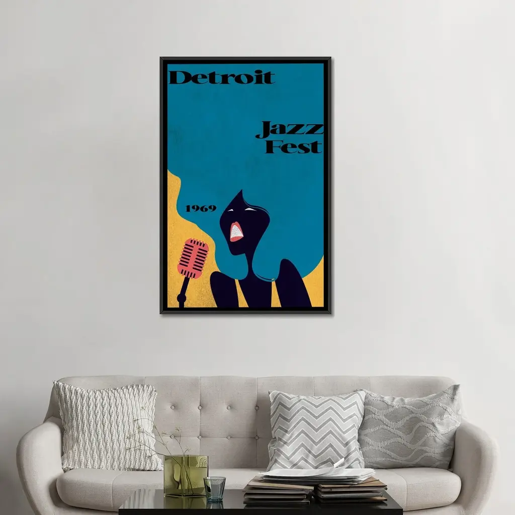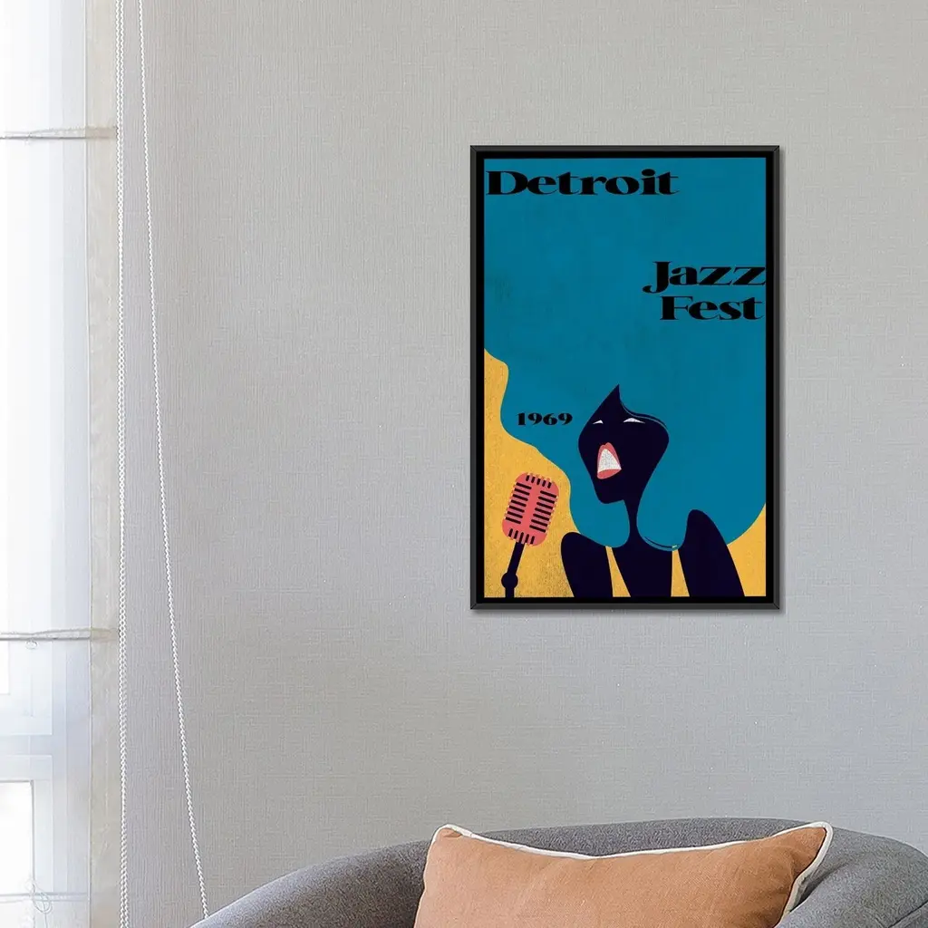 Icanvas "Detroit Jazz Fest 1969" By Jay Stanley Framed Canvas Print - Black - 40x26
