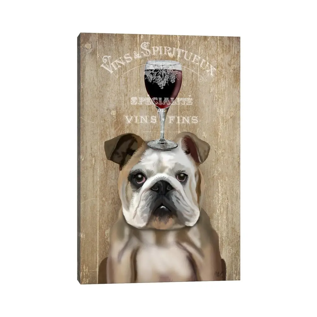 Icanvas "Dog Au Vin, English Bulldog" By Fab Funky Canvas Print - 18x12x1.5