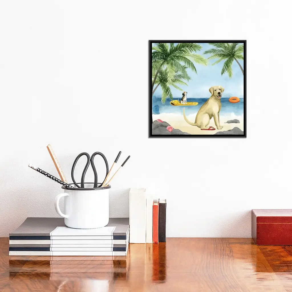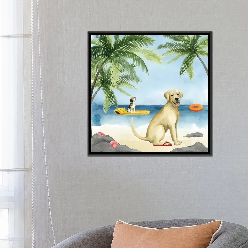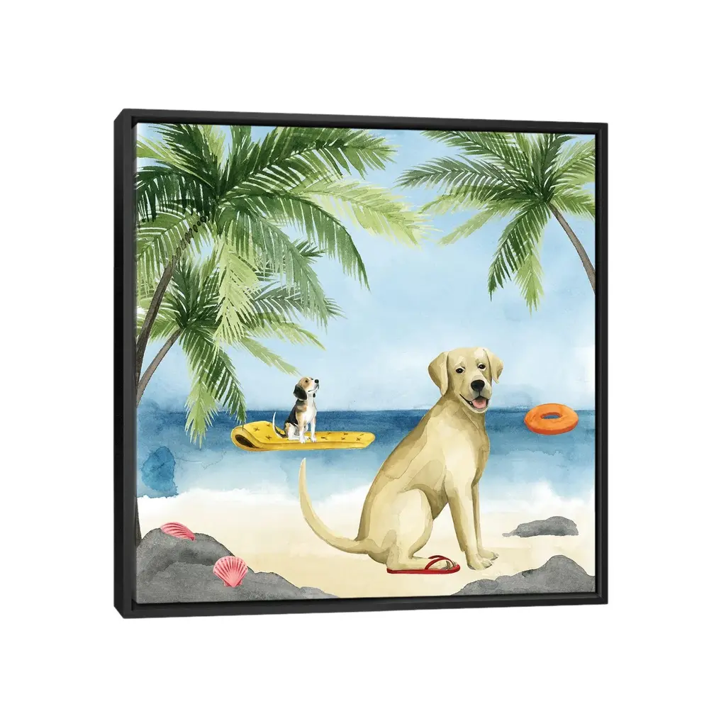 Icanvas "Dogs On Deck Ii" By Grace Popp Framed Canvas Print - Black - 18x18