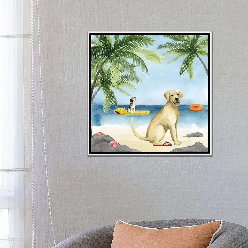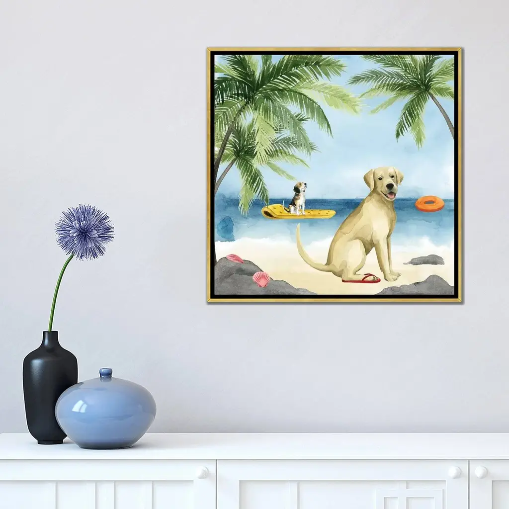 Icanvas "Dogs On Deck Ii" By Grace Popp Framed Canvas Print - Gold - 12x12