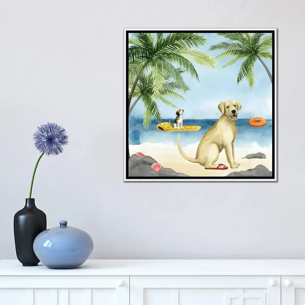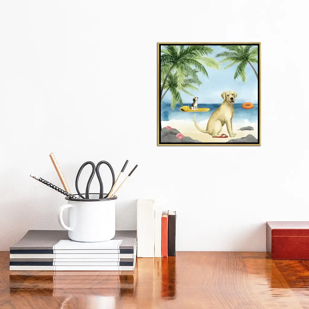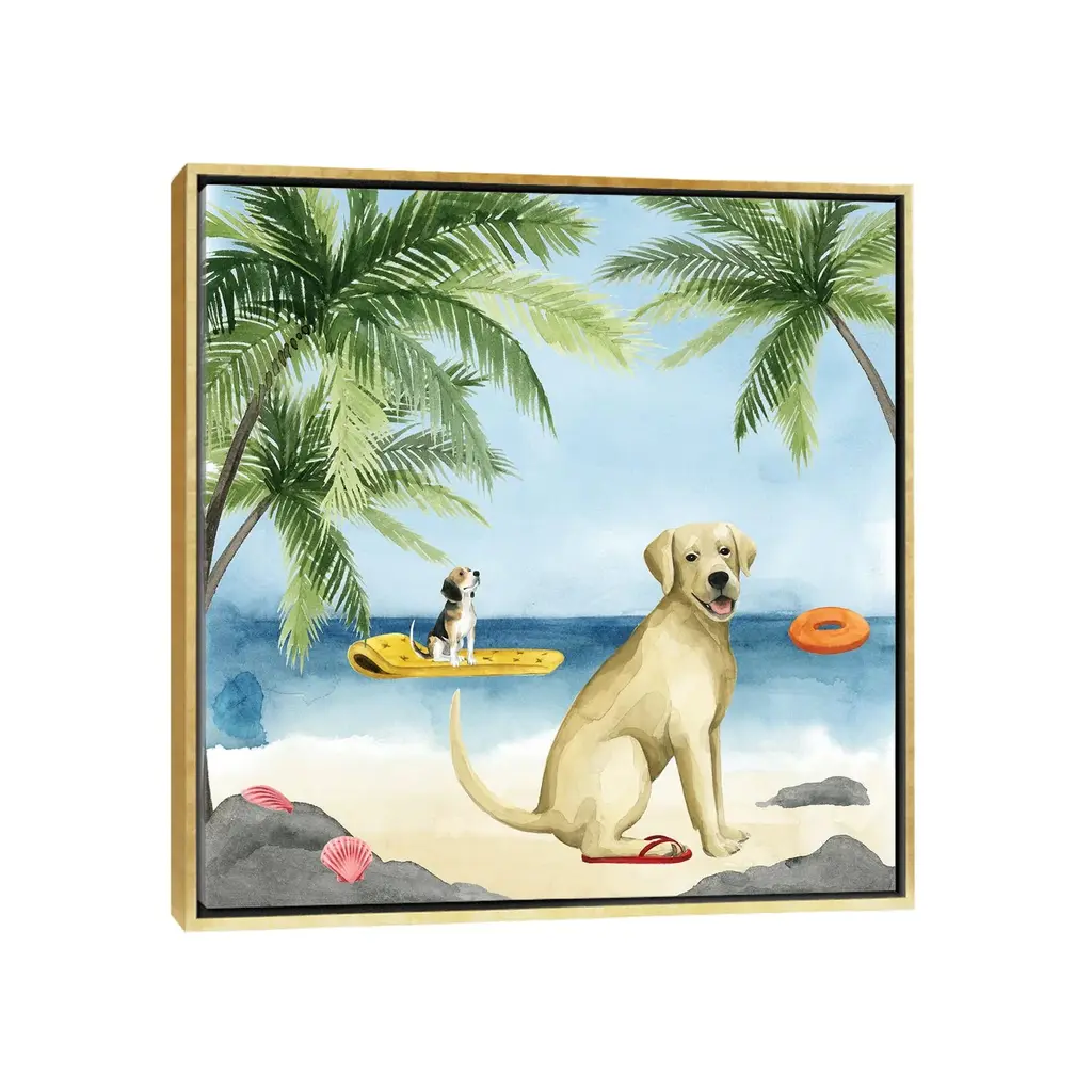 Icanvas "Dogs On Deck Ii" By Grace Popp Framed Canvas Print - White - 12x12
