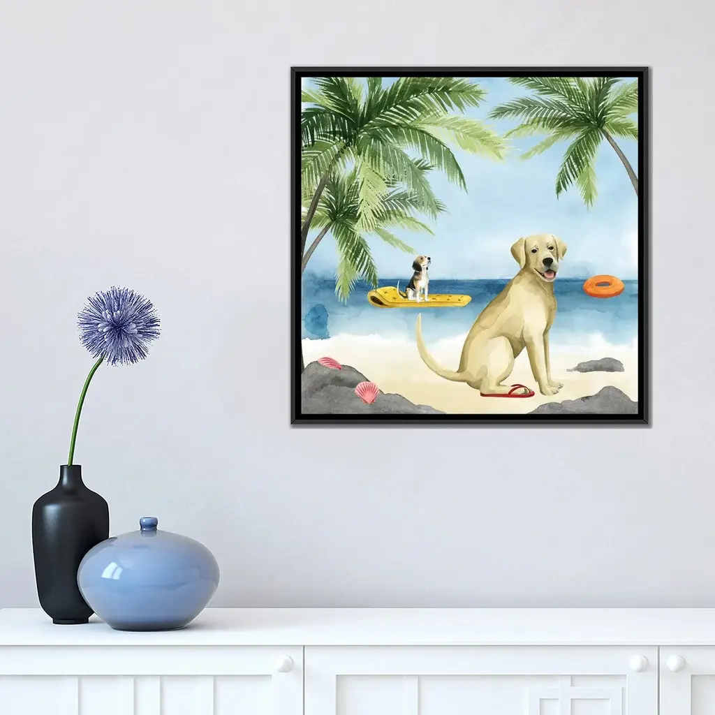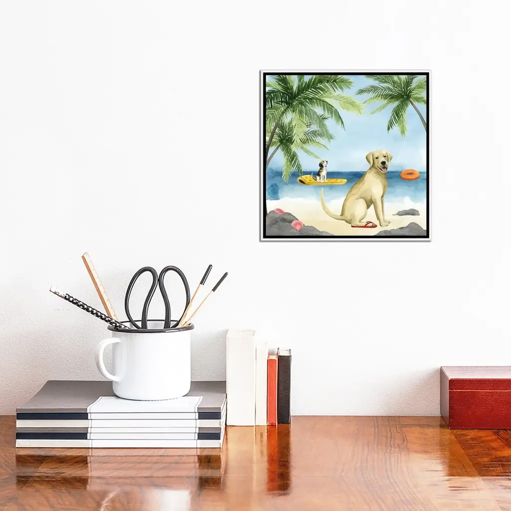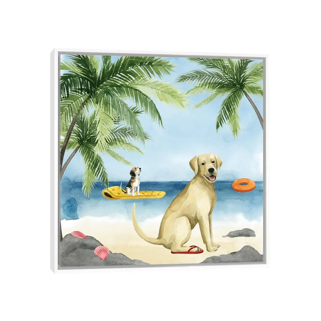 Icanvas "Dogs On Deck Ii" By Grace Popp Framed Canvas Print - White - 18x18