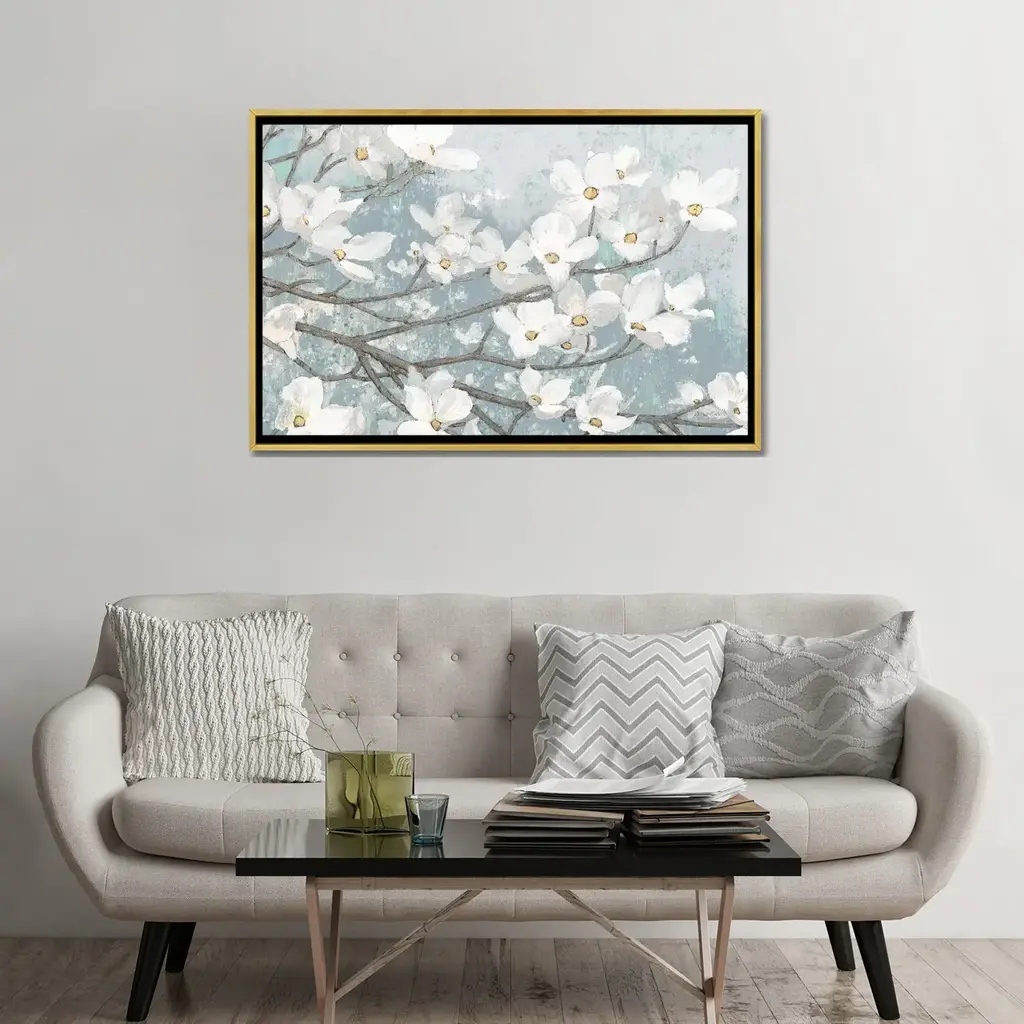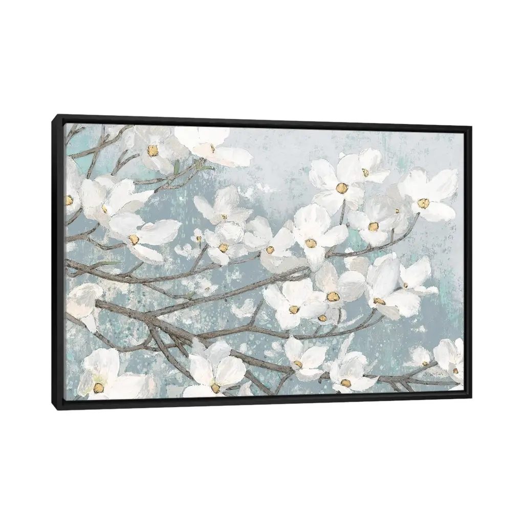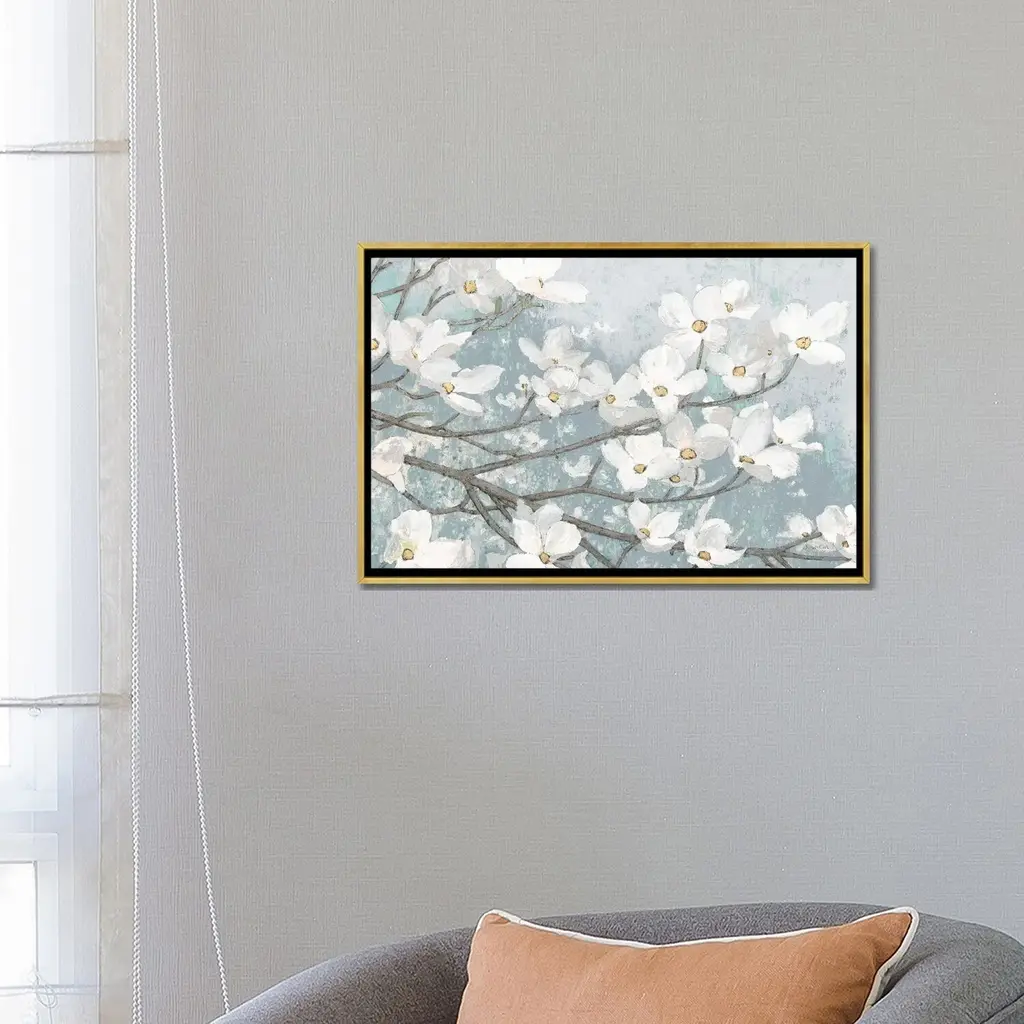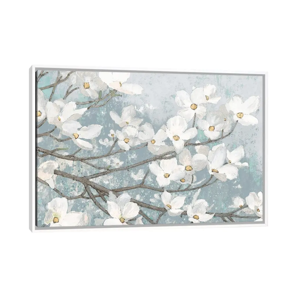 Icanvas "Dogwood Blossoms Ii In Blue Gray Crop" By James Wiens Framed Canvas Print - White - 18x26