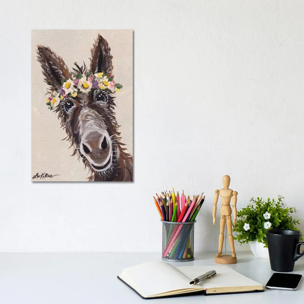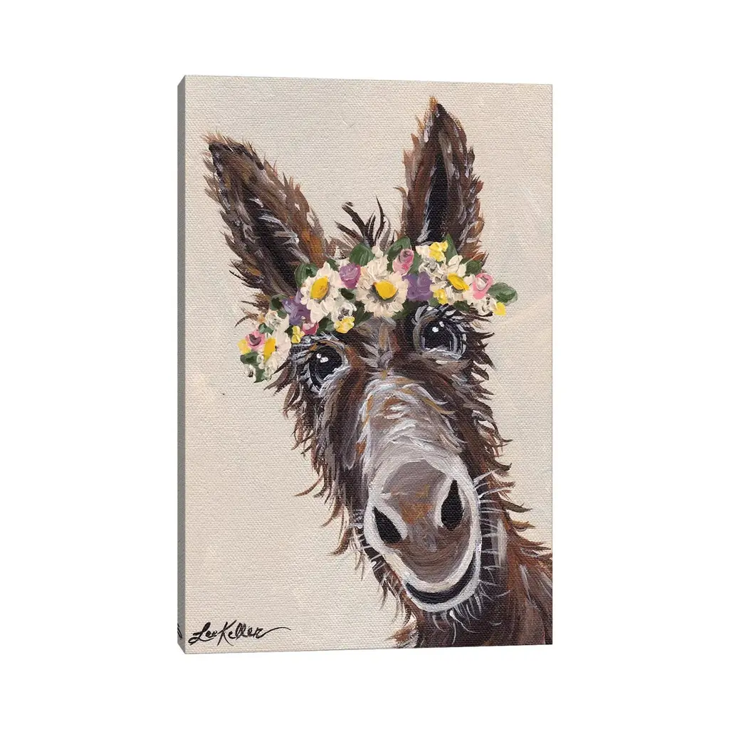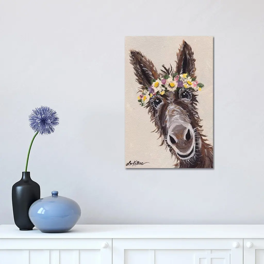 Icanvas "Donkey With Flower Crown" By Hippie Hound Studios Canvas Print - 12x8x0.75