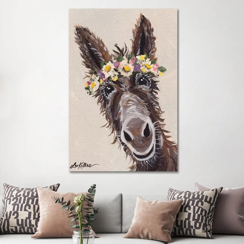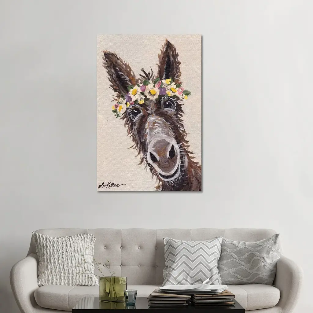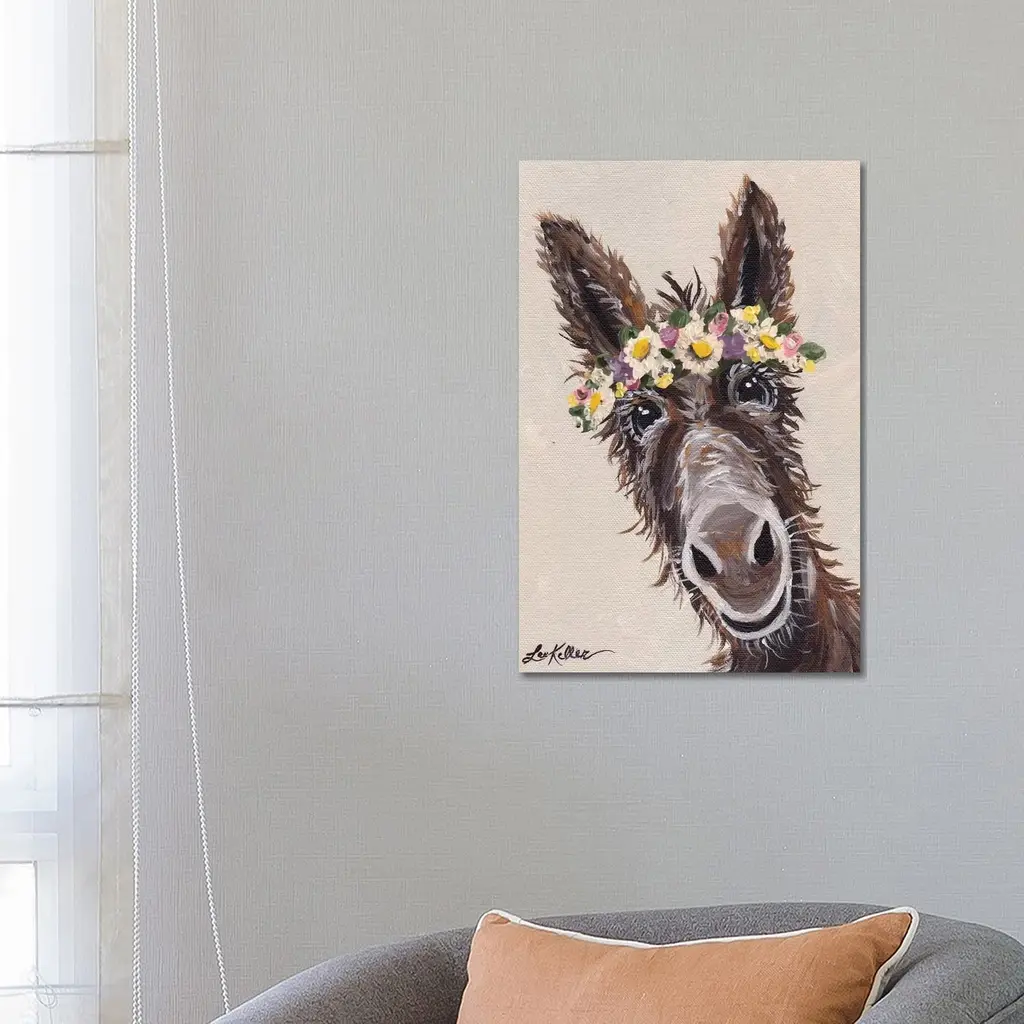 Icanvas "Donkey With Flower Crown" By Hippie Hound Studios Canvas Print - 12x8x0.75