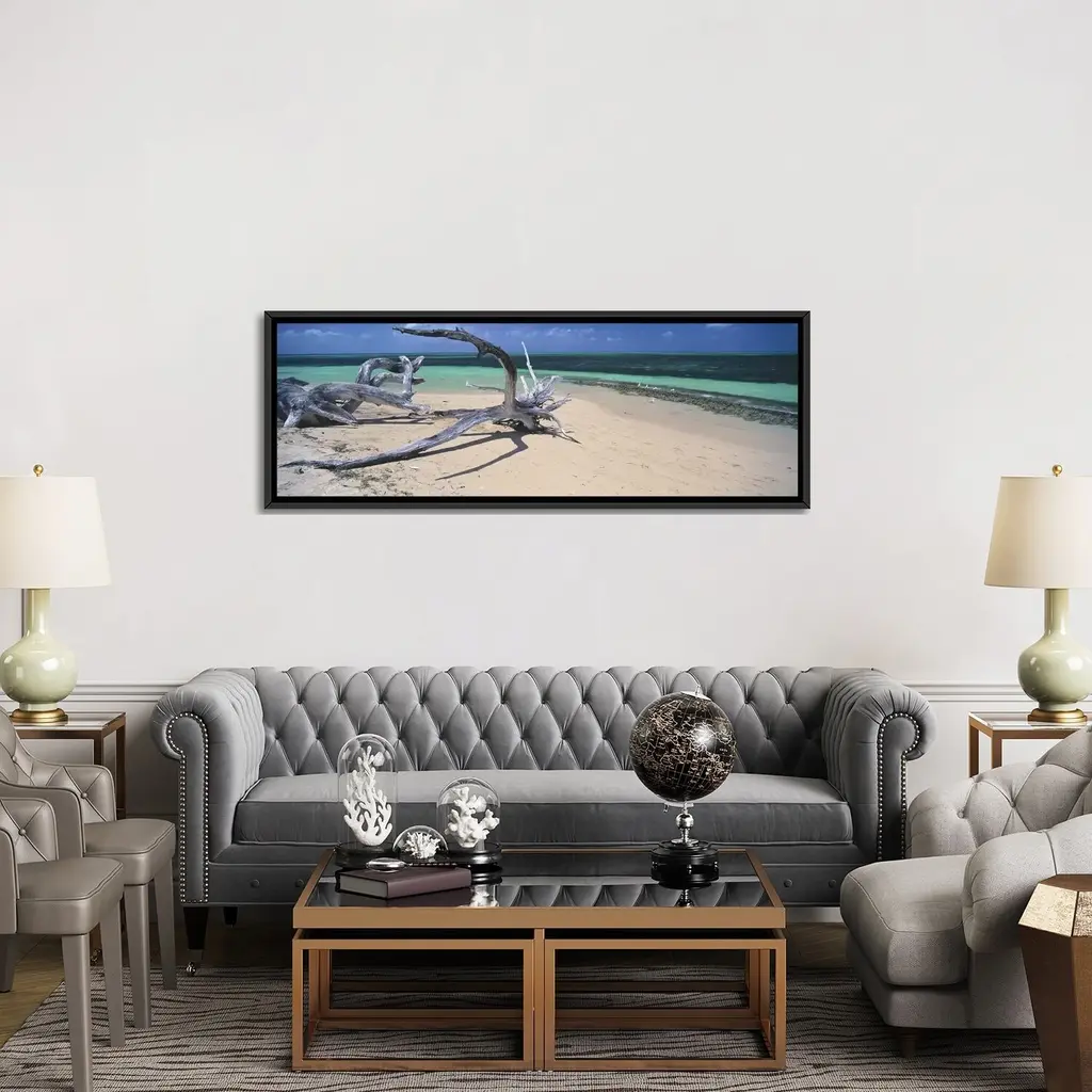 Icanvas "Driftwood On The Beach, Green Island,great Barrier Reef, Queensland, Australia" By Panoramic Images Framed Canvas Print - 20x60 - Black