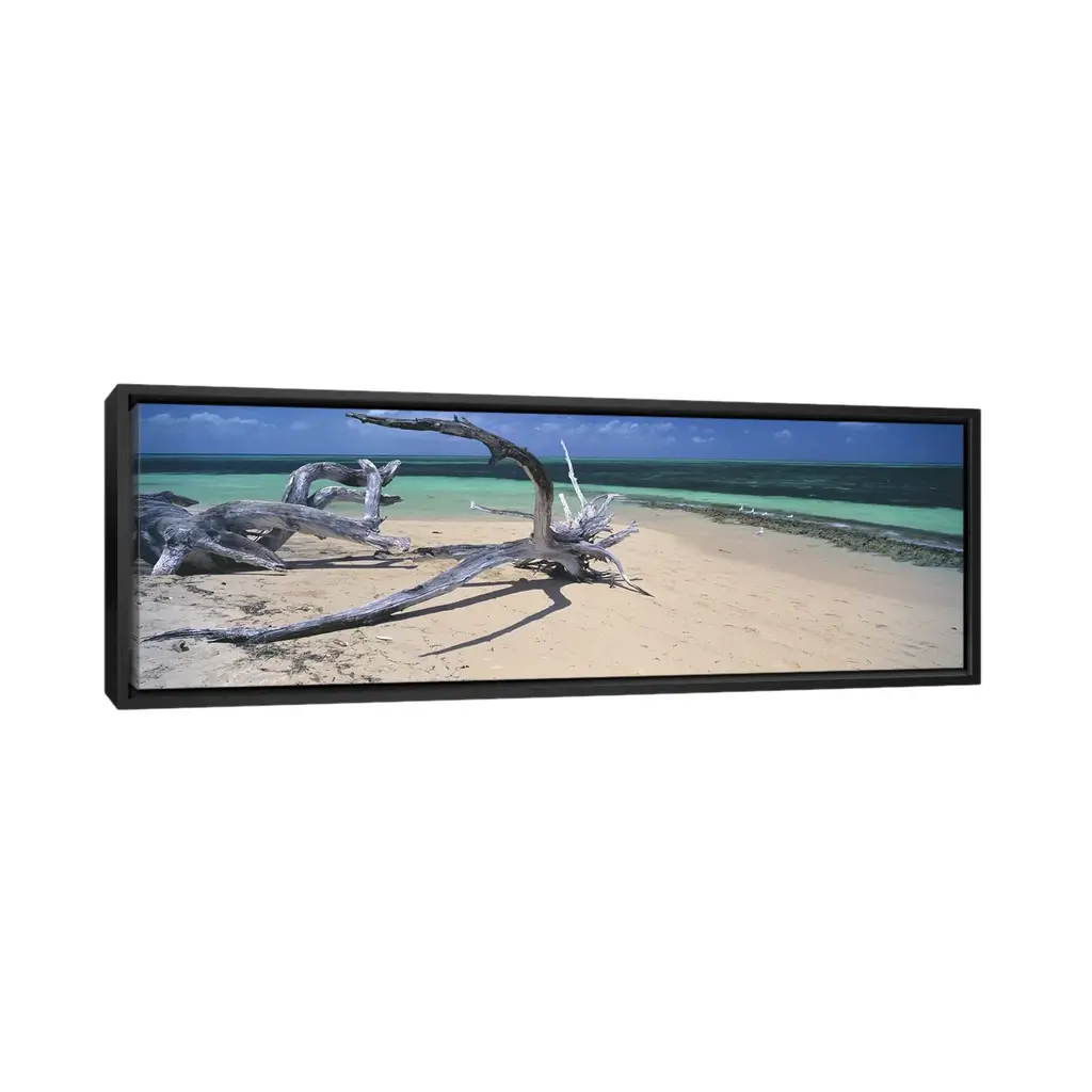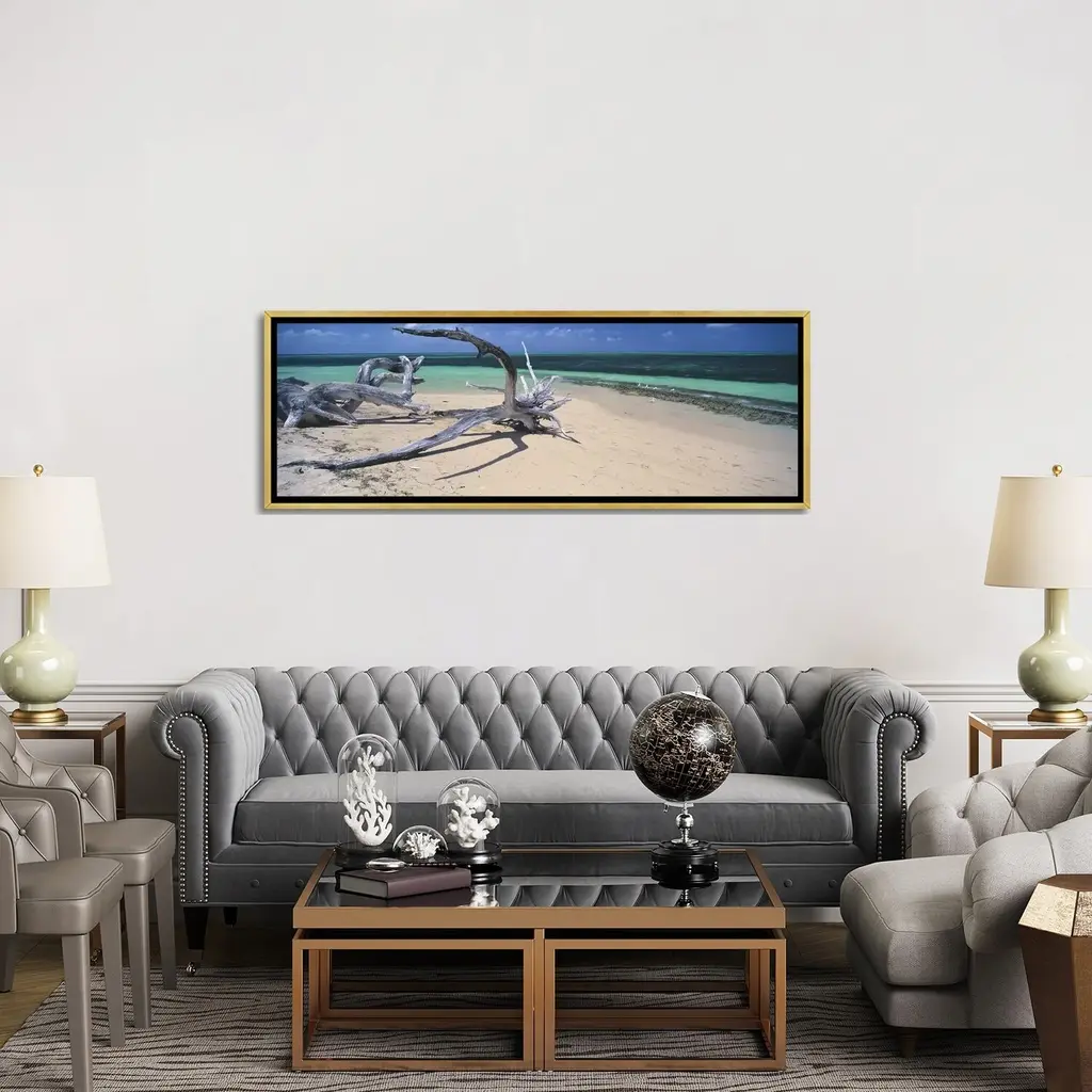 Icanvas "Driftwood On The Beach, Green Island,great Barrier Reef, Queensland, Australia" By Panoramic Images Framed Canvas Print - 20x60 - Gold