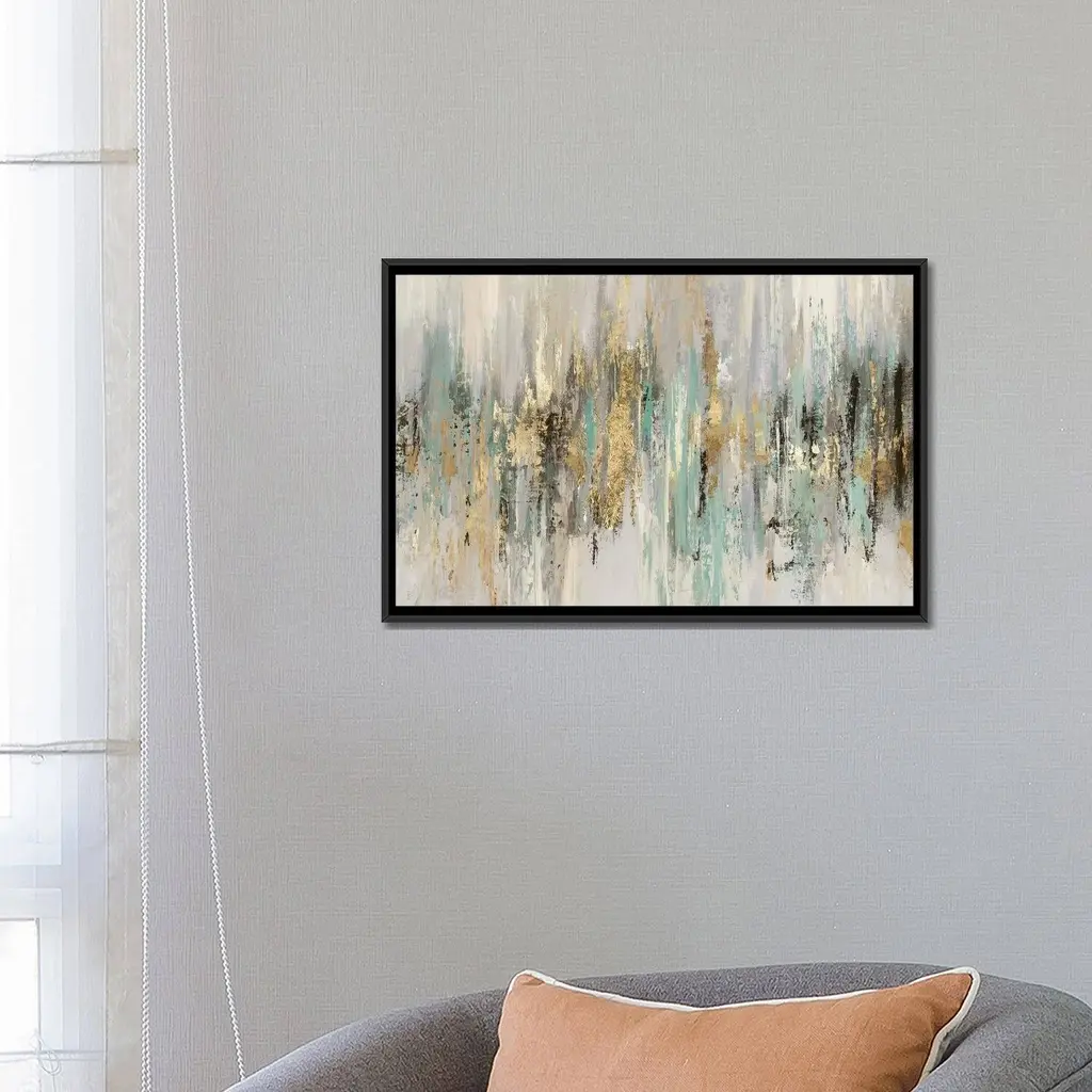 Icanvas "Dripping Gold I" By Tom Reeves Framed Canvas Print - Black - 32x48
