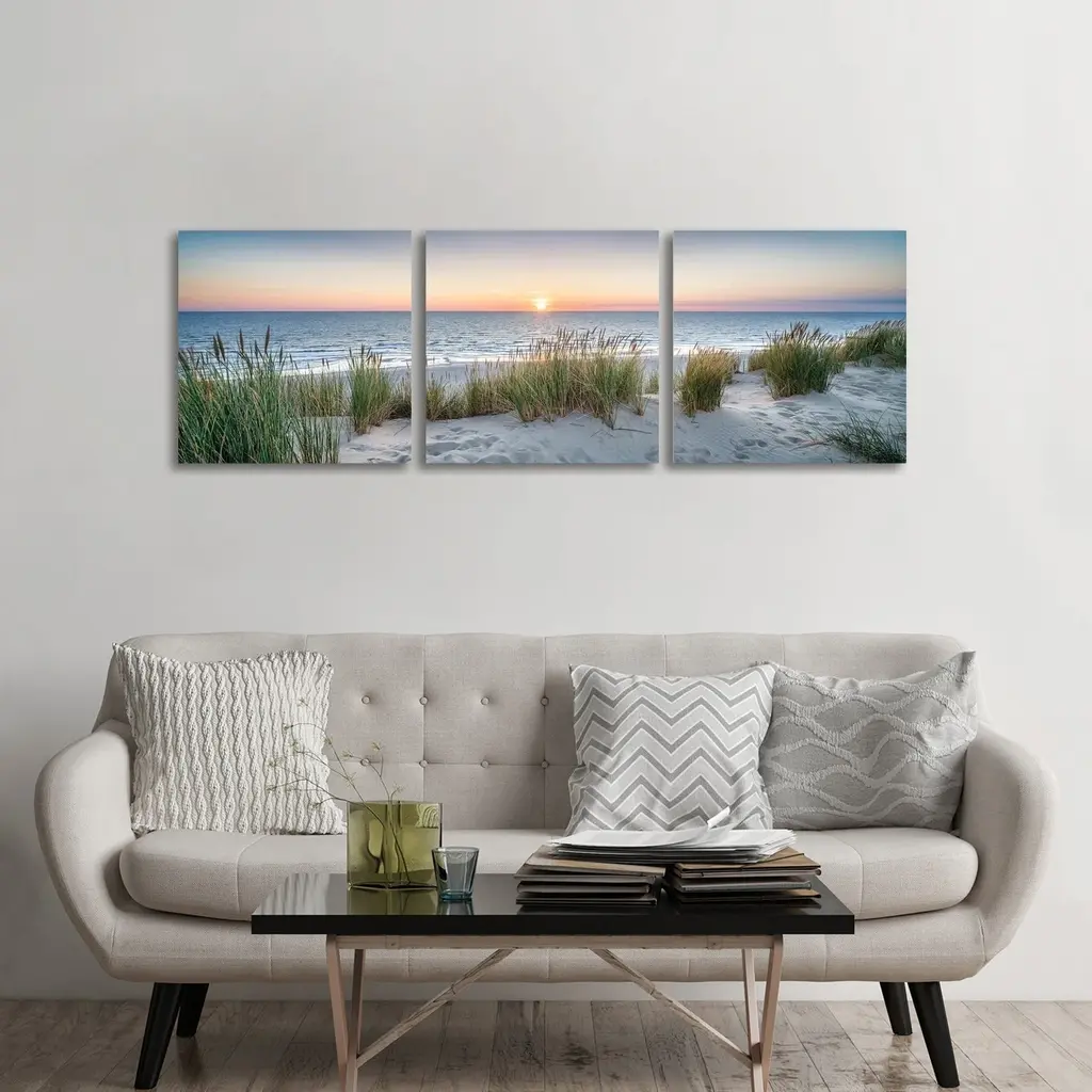 Icanvas "Dune Beach Panorama At Sunset" By Jan Becke 3-Piece Canvas Wall Art Set - 16x48x1.5