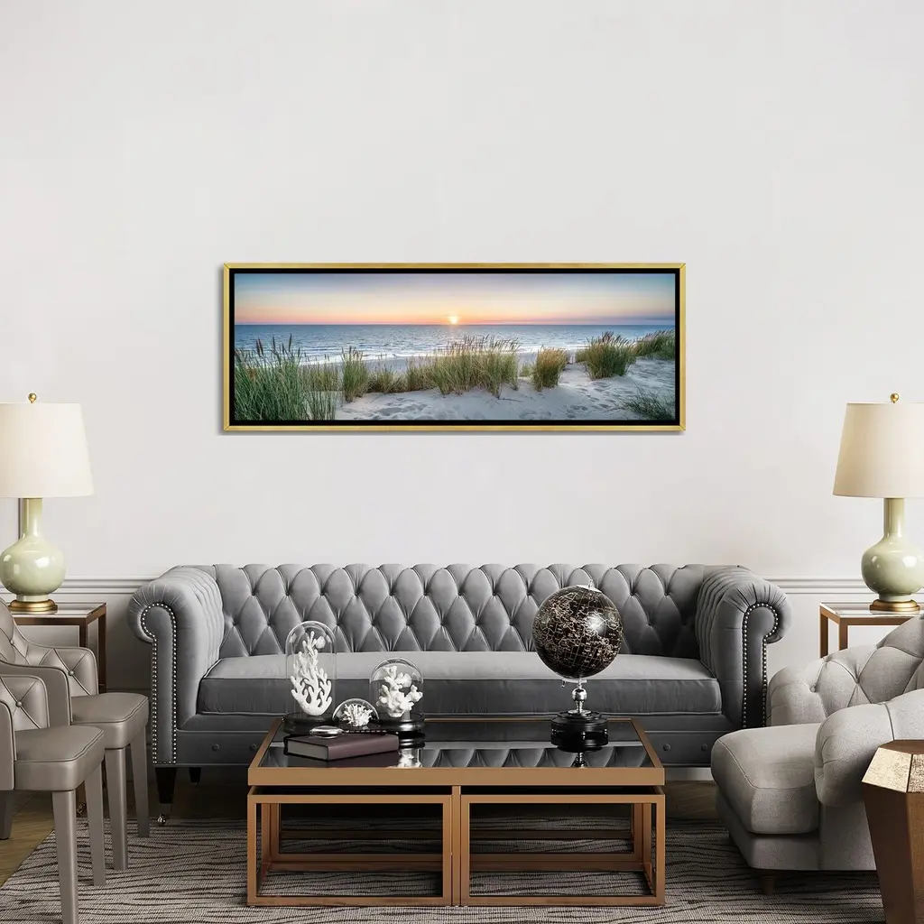 Icanvas "Dune Beach Panorama At Sunset" By Jan Becke Framed Canvas Print - 20x60 - Gold