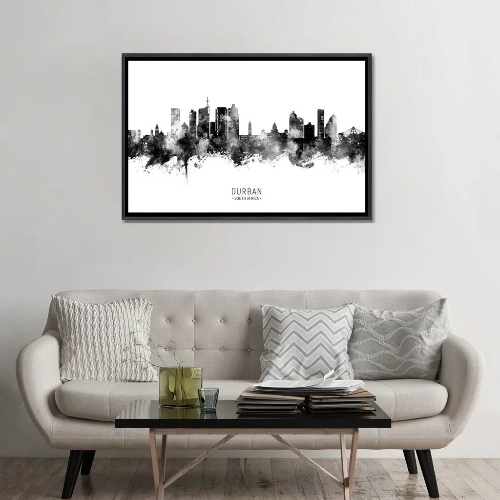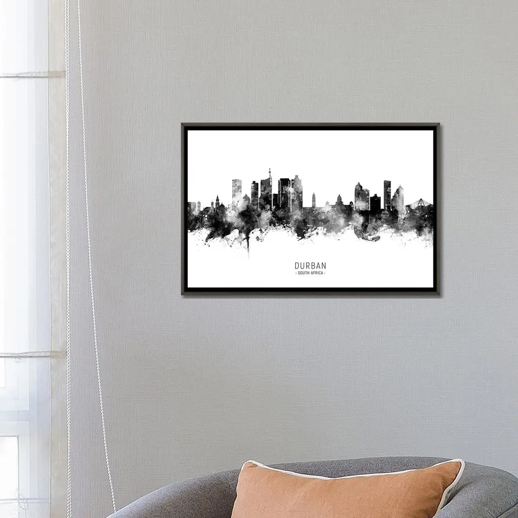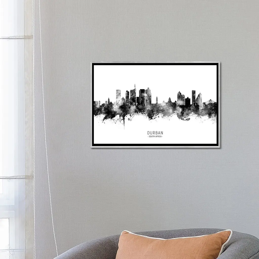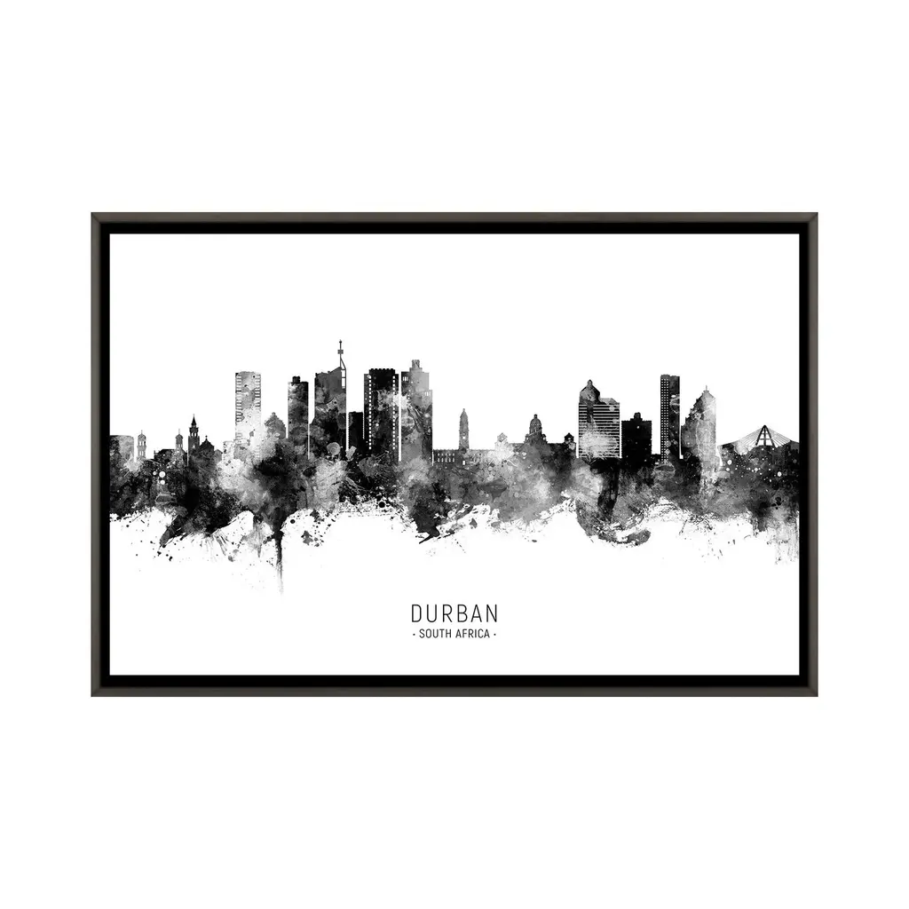 Icanvas "Durban South Africa Skyline Name Bw" By Michael Tompsett Framed - Charcoal - 18x26
