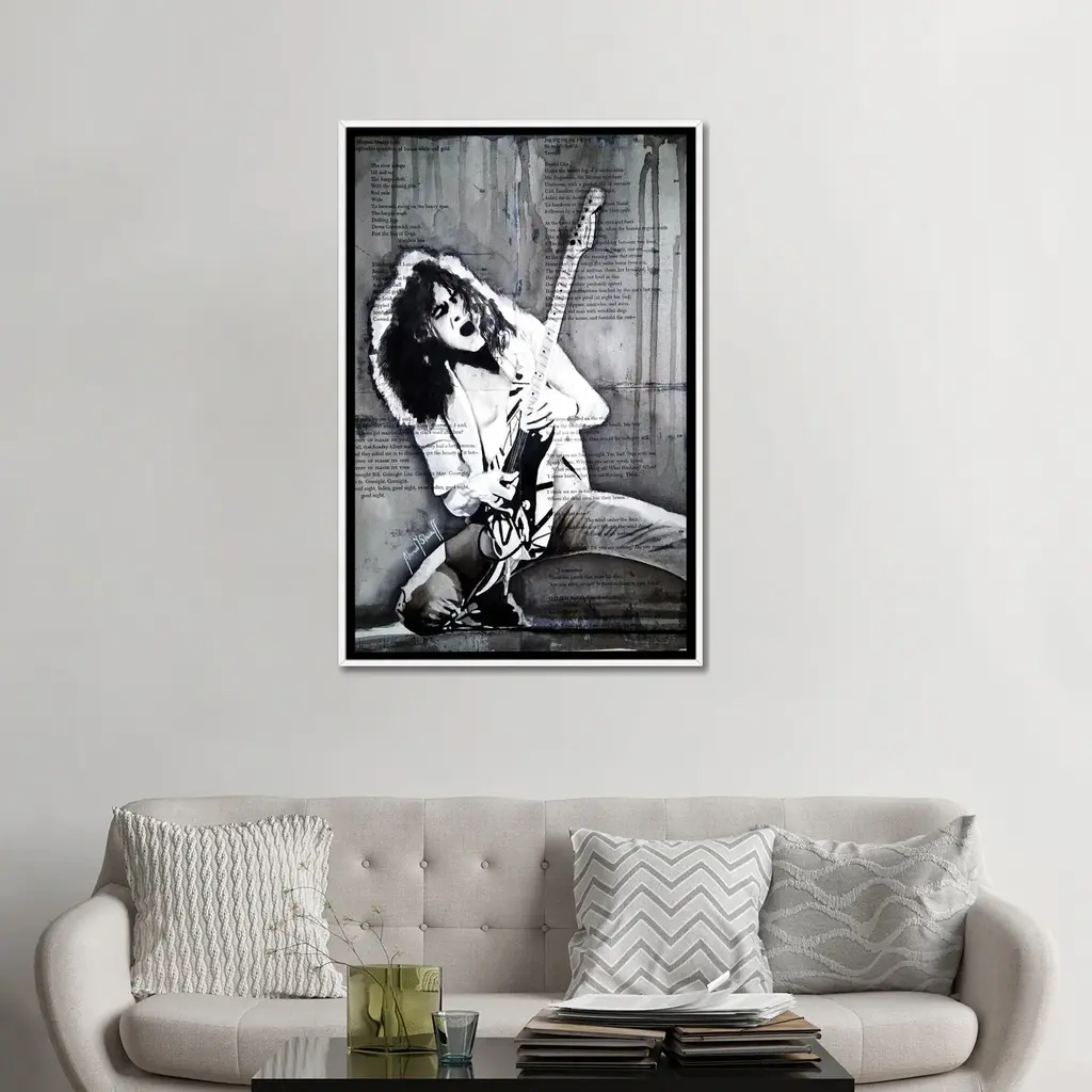 Icanvas "Eddie Van Halen" By Ahmad Shariff Framed Canvas Print - Gold - 40x26
