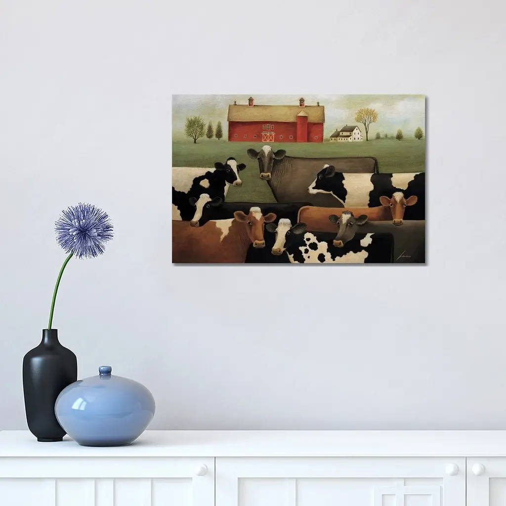 Icanvas "Eight Cows" By Lowell Herrero Canvas Print - 8X12x0.75