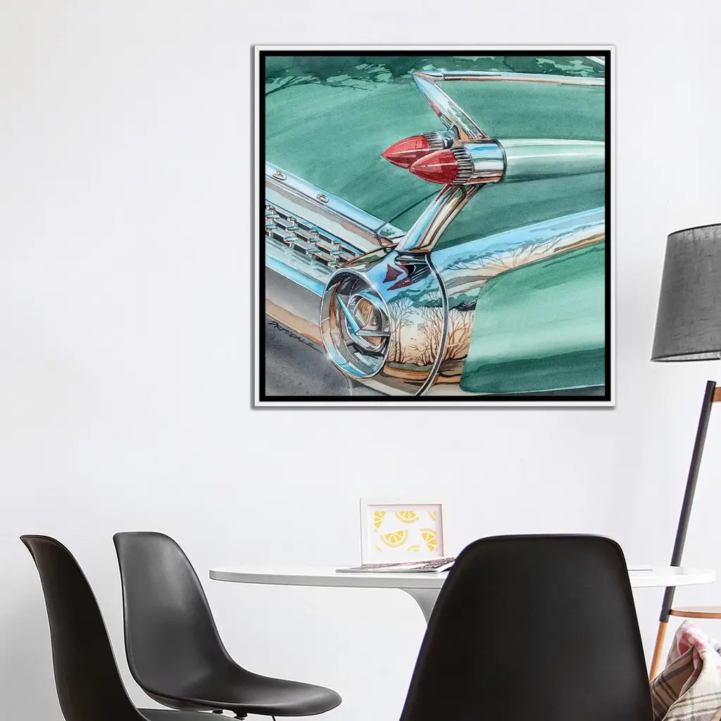 Elevate your space with the iCanvas "El Dorado Fin" by Bill Drysdale Framed Canvas Print. This high-quality artwork is printed on artist-grade canvas, giving it the texture and look of a fine-art painting. Made in the USA, the canvas is professionally hand-stretched and stapled over pine-wood bars in Gallery Wrap style, creating a sleek and polished appearance. The print is mounted to a 2-inch thick hardwood frame, with a 3/8" space between the art and frame for a stunning "floating" effect. With fade-resistant archival inks, the vibrant colors and exceptional detail will last for decades. Embrace contemporary style and add a touch of brilliance to any room with this captivating piece.Features:
