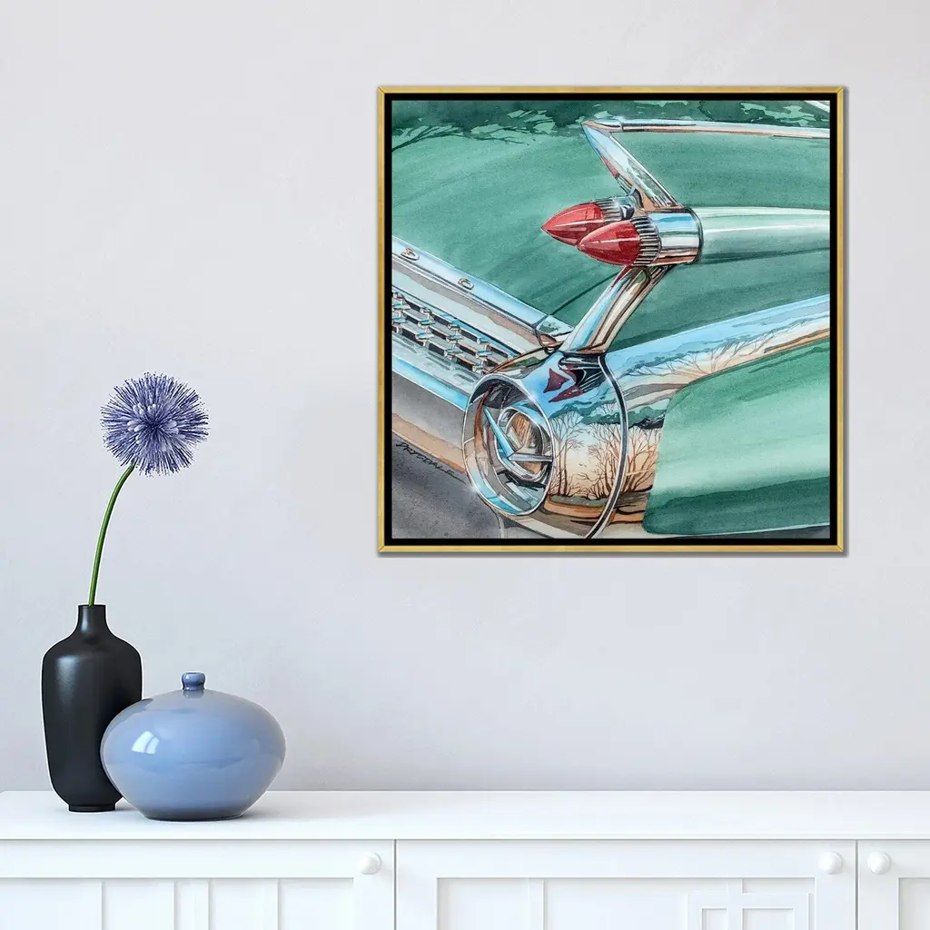 Elevate your space with the iCanvas "El Dorado Fin" by Bill Drysdale Framed Canvas Print. This high-quality artwork is printed on artist-grade canvas, giving it the texture and look of a fine-art painting. Made in the USA, the canvas is professionally hand-stretched and stapled over pine-wood bars in Gallery Wrap style, creating a sleek and polished appearance. The print is mounted to a 2-inch thick hardwood frame, with a 3/8" space between the art and frame for a stunning "floating" effect. With fade-resistant archival inks, the vibrant colors and exceptional detail will last for decades. Embrace contemporary style and add a touch of brilliance to any room with this captivating piece.Features: