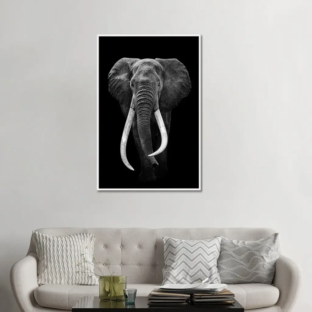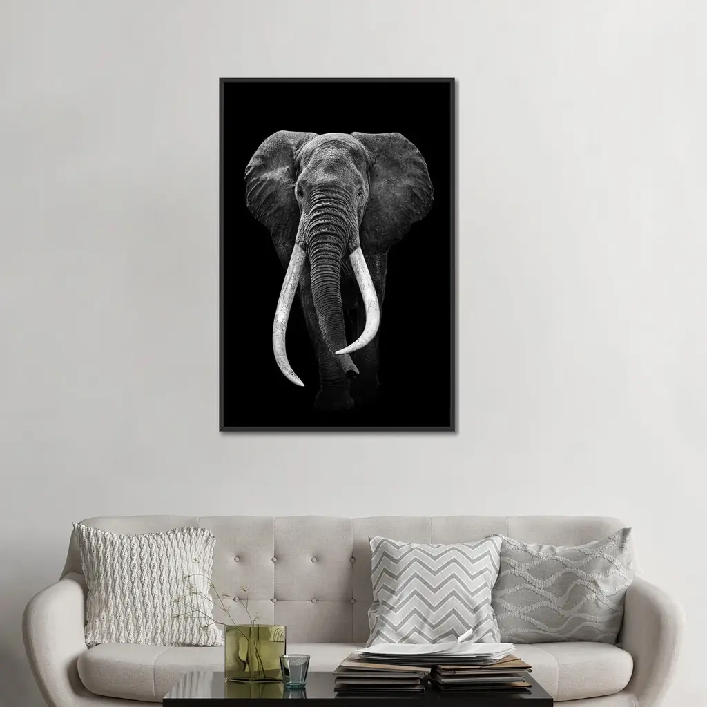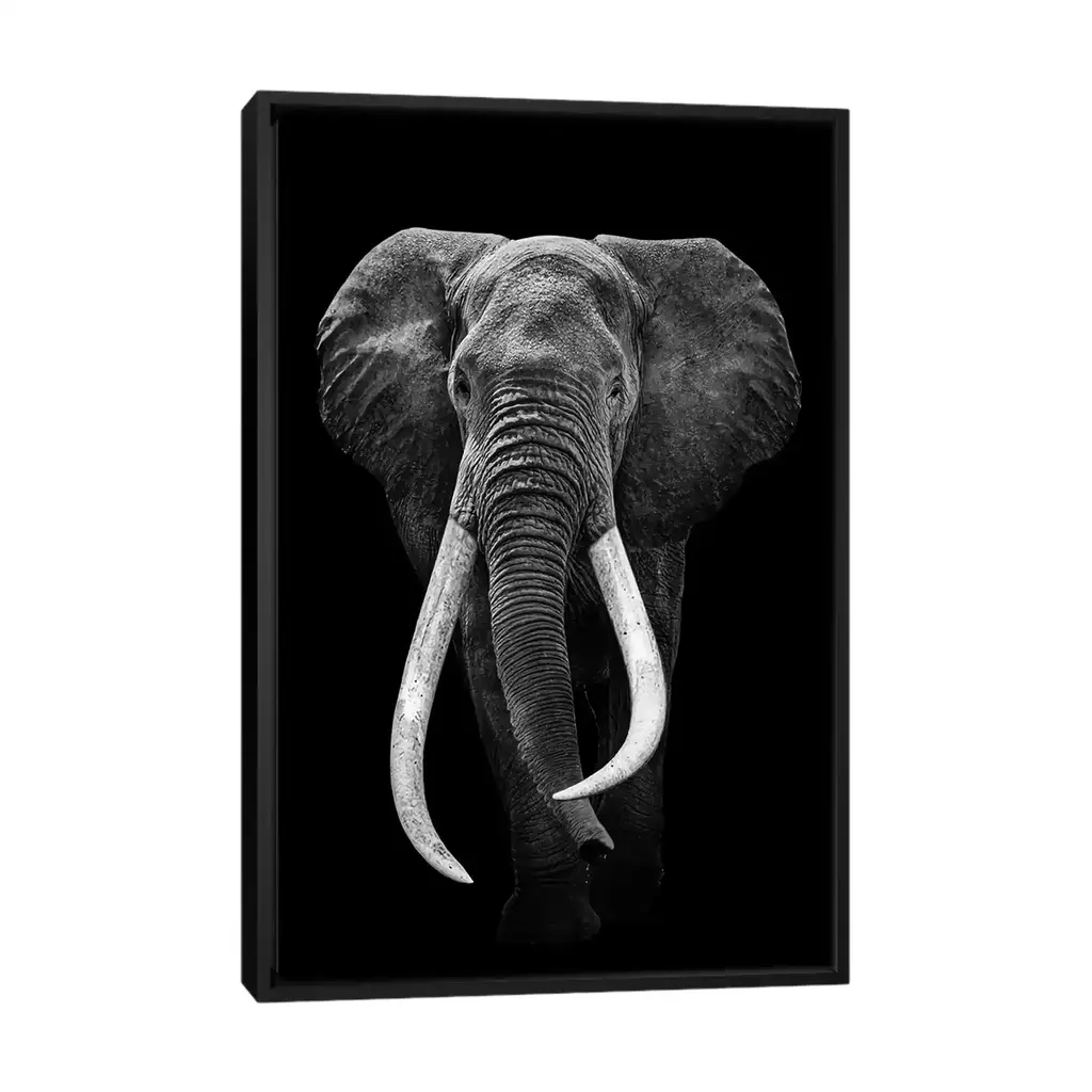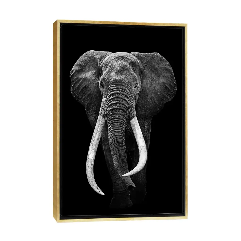 Icanvas "Elephant Black And White" By Adrian Vieriu Framed - Gold - 26x18