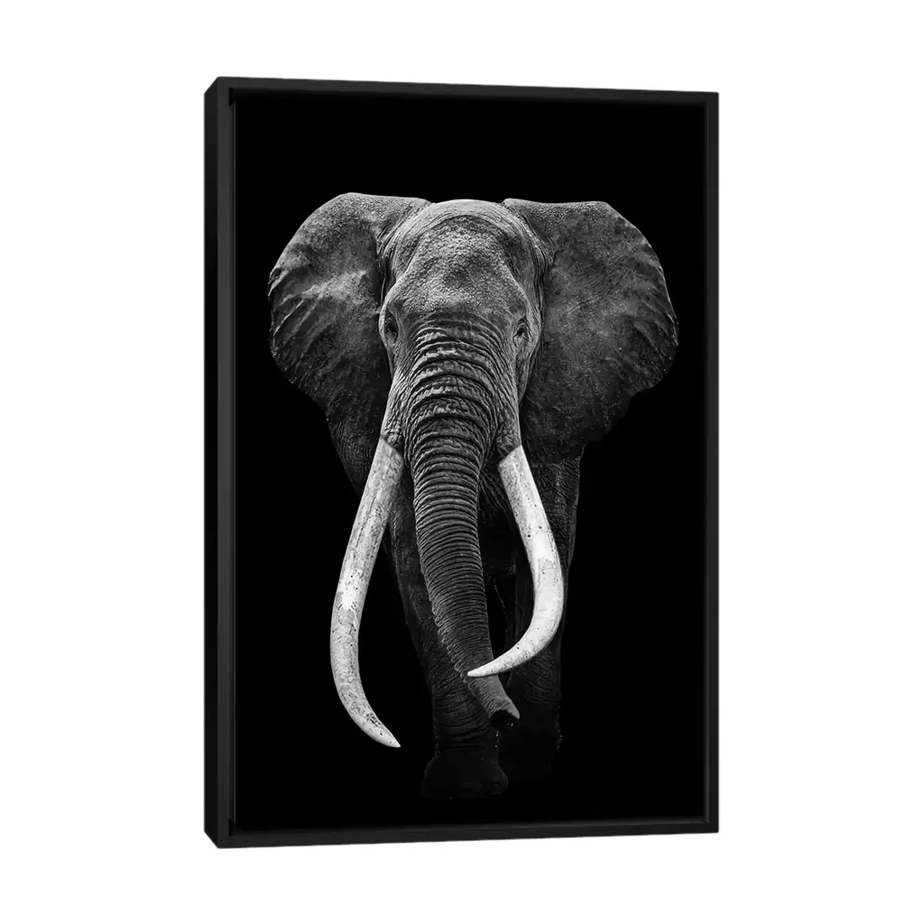 Icanvas "Elephant Black And White" By Adrian Vieriu Framed - Gold - 48x32