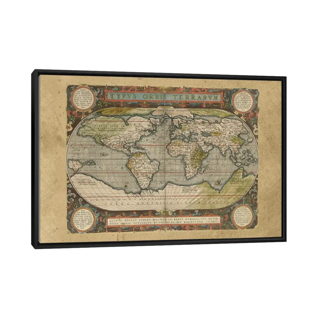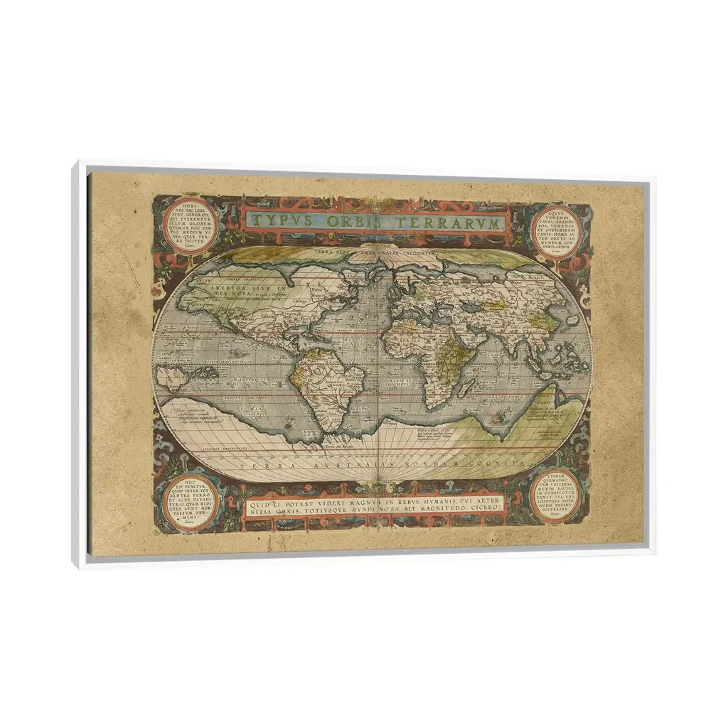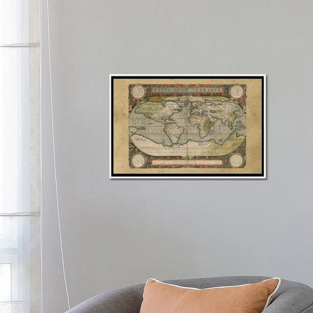 Icanvas "Embellished Antique World Map" By Vision Studio Framed Canvas Print - Gold - 26x40